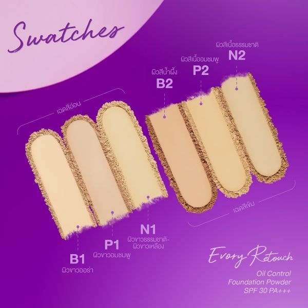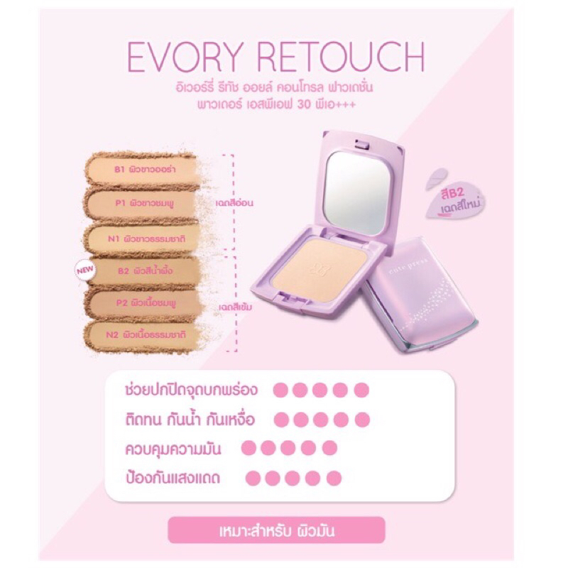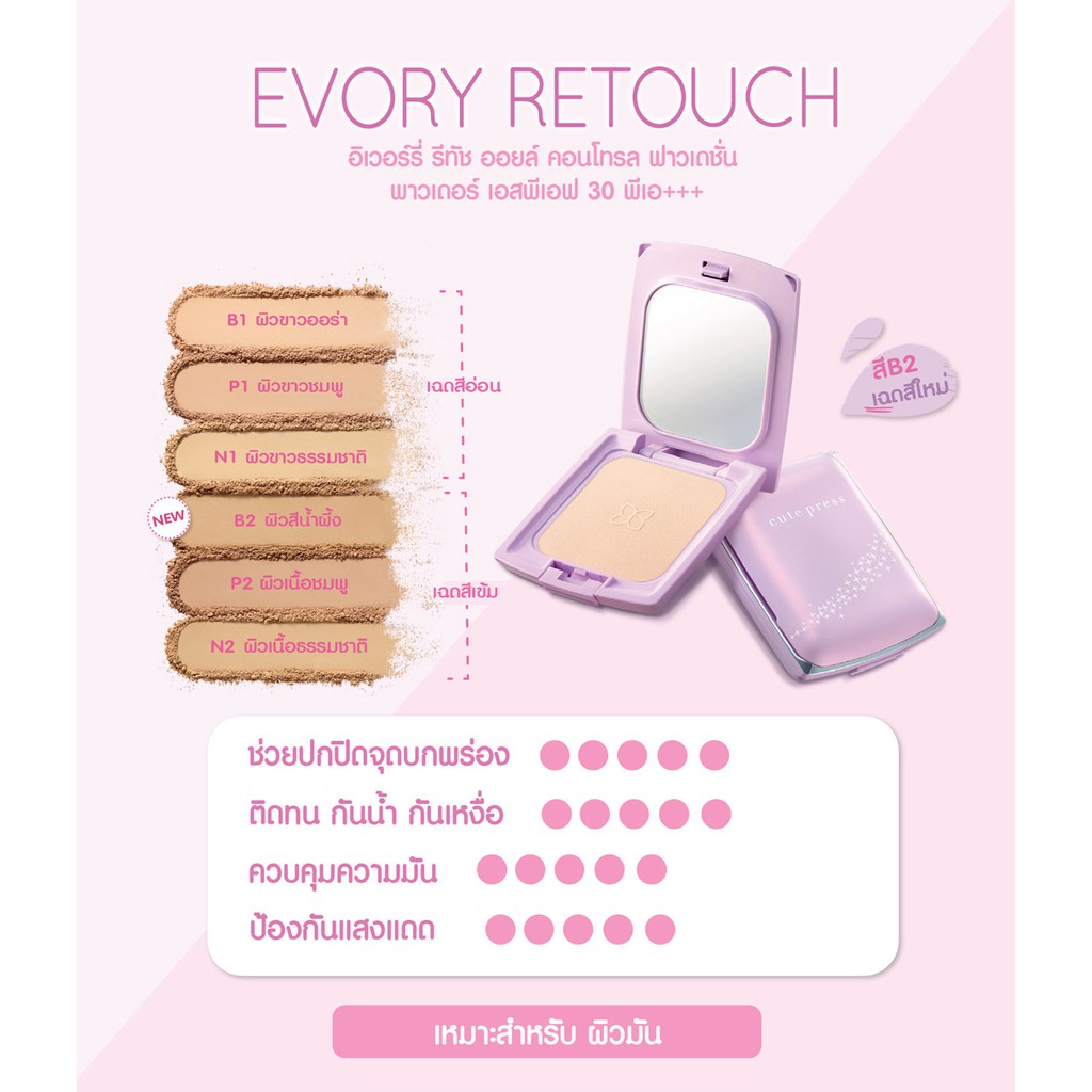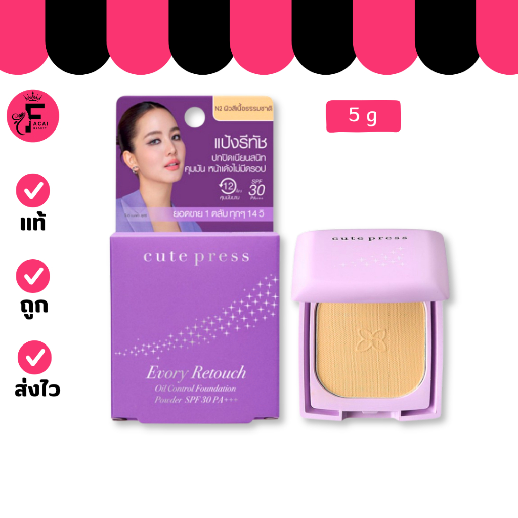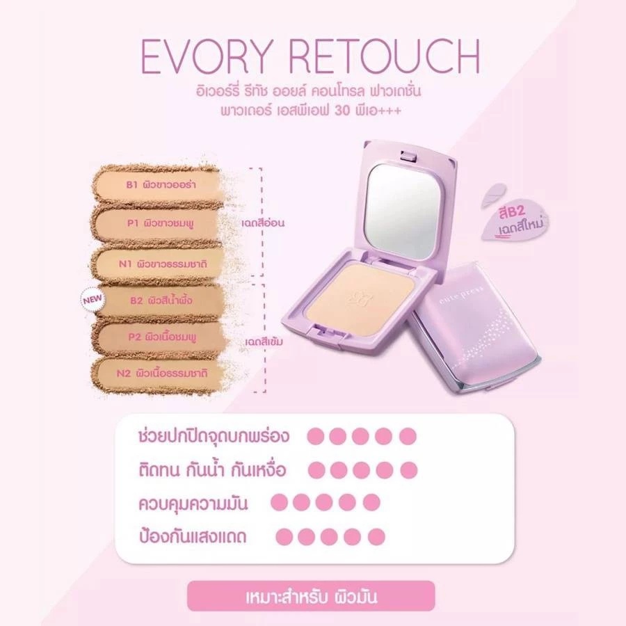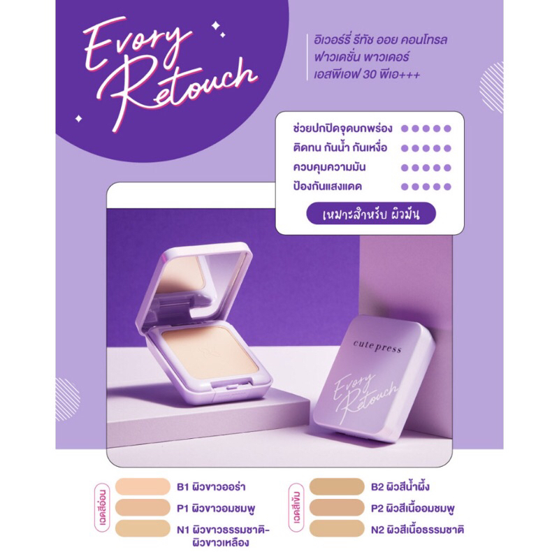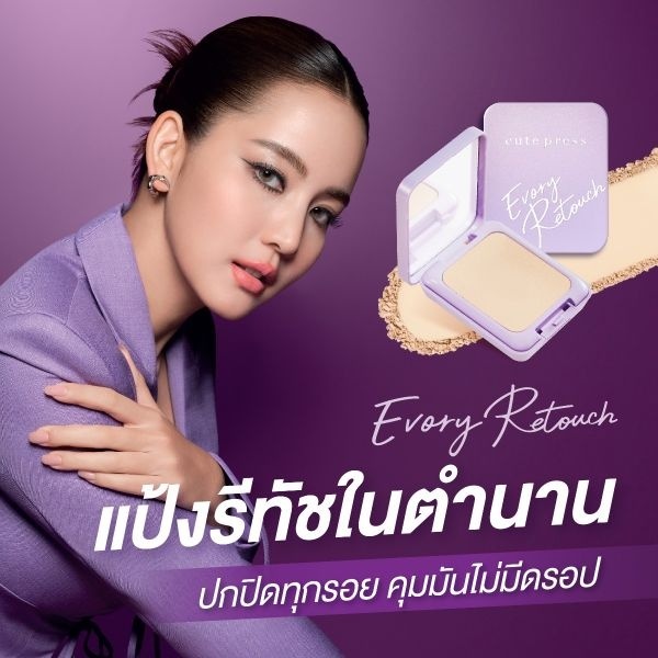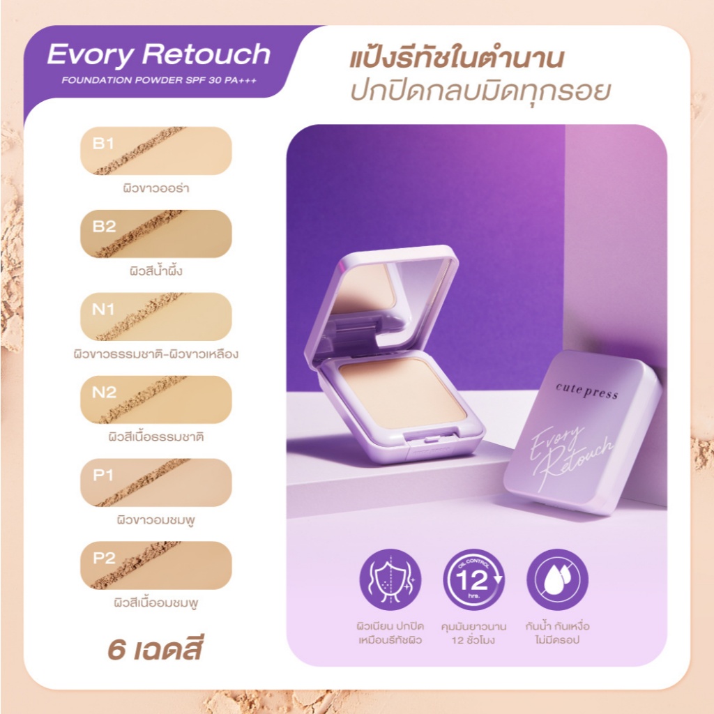 Cute Press Evory Retouch Oil Control Foundation Powder แป้งคิวท์เพรส อิเวอร์รี่ รีทัช ตลับม่วง (12g.)