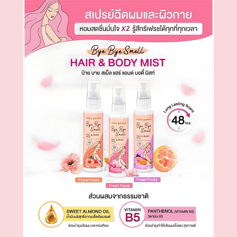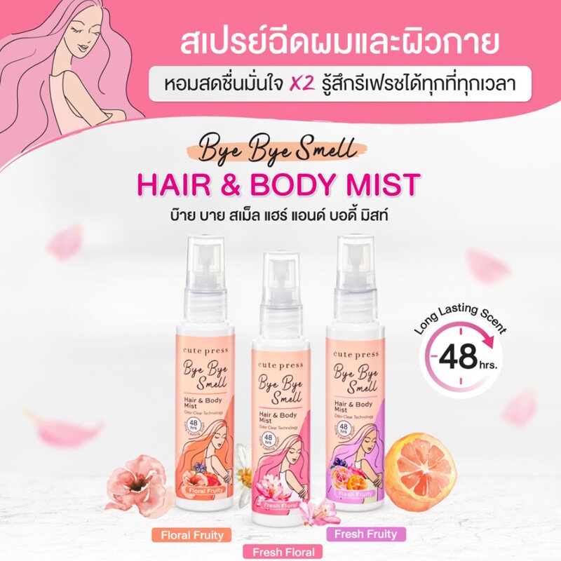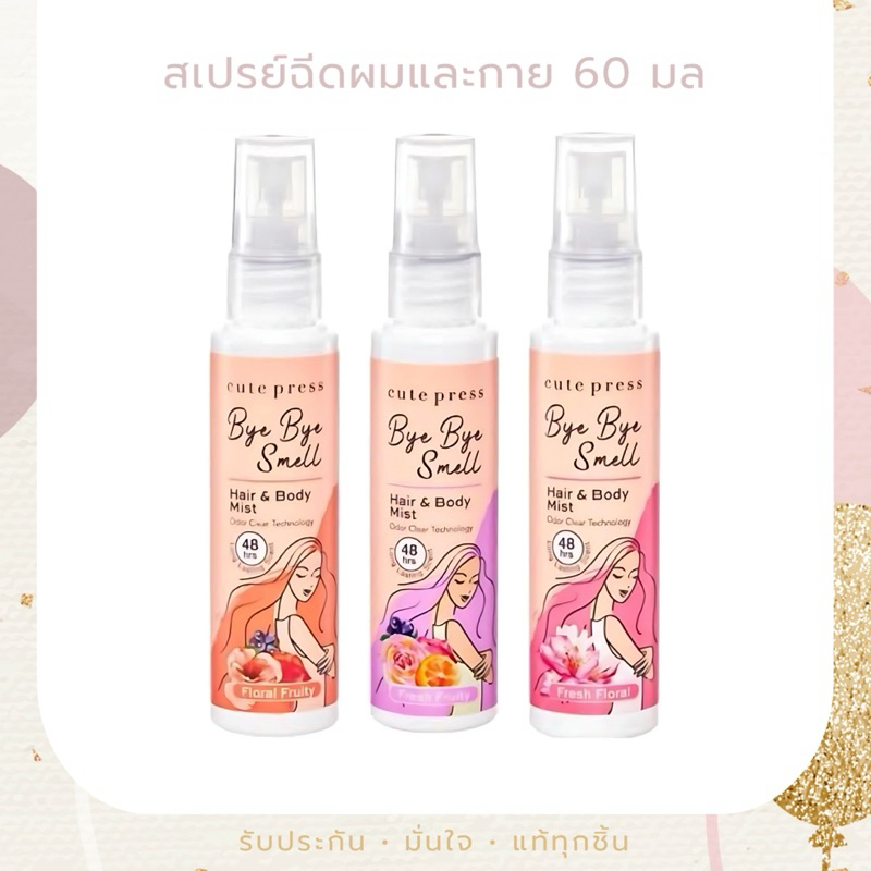 Cute Press Bye Bye Smell Hair & Body Mist คิวท์เพรส สเปรย์ฉีดผมและผิวกาย 60ml (Floral Fruity/Fresh Floral/Fresh Fruity)