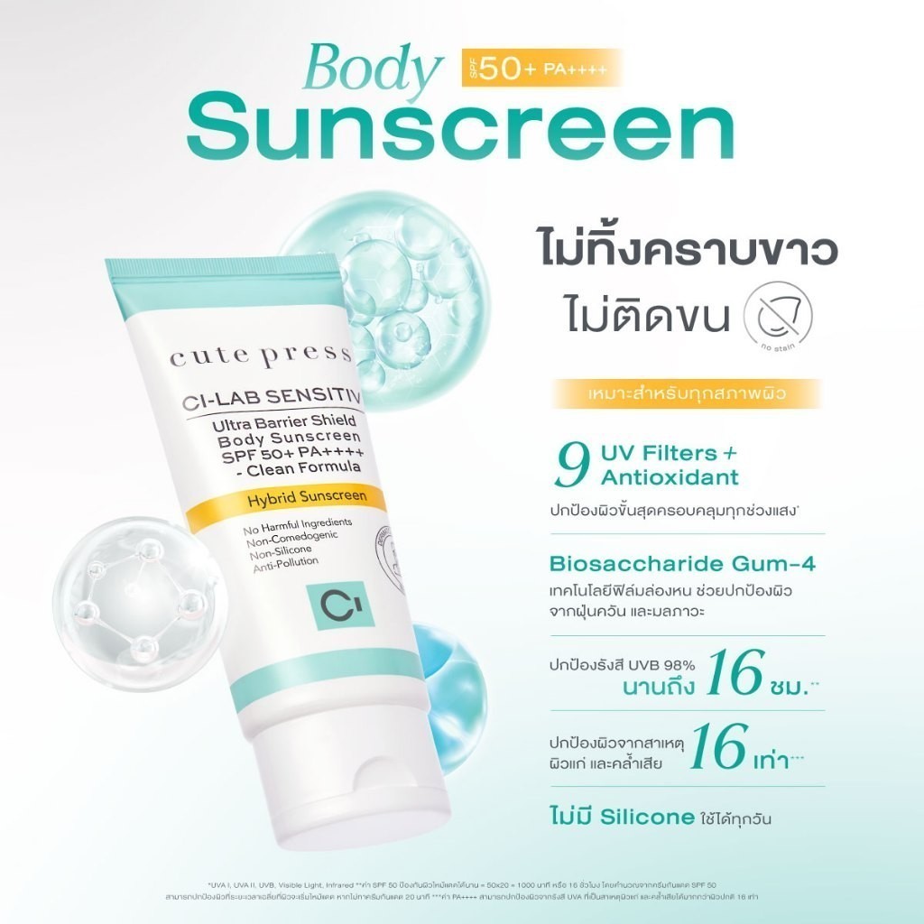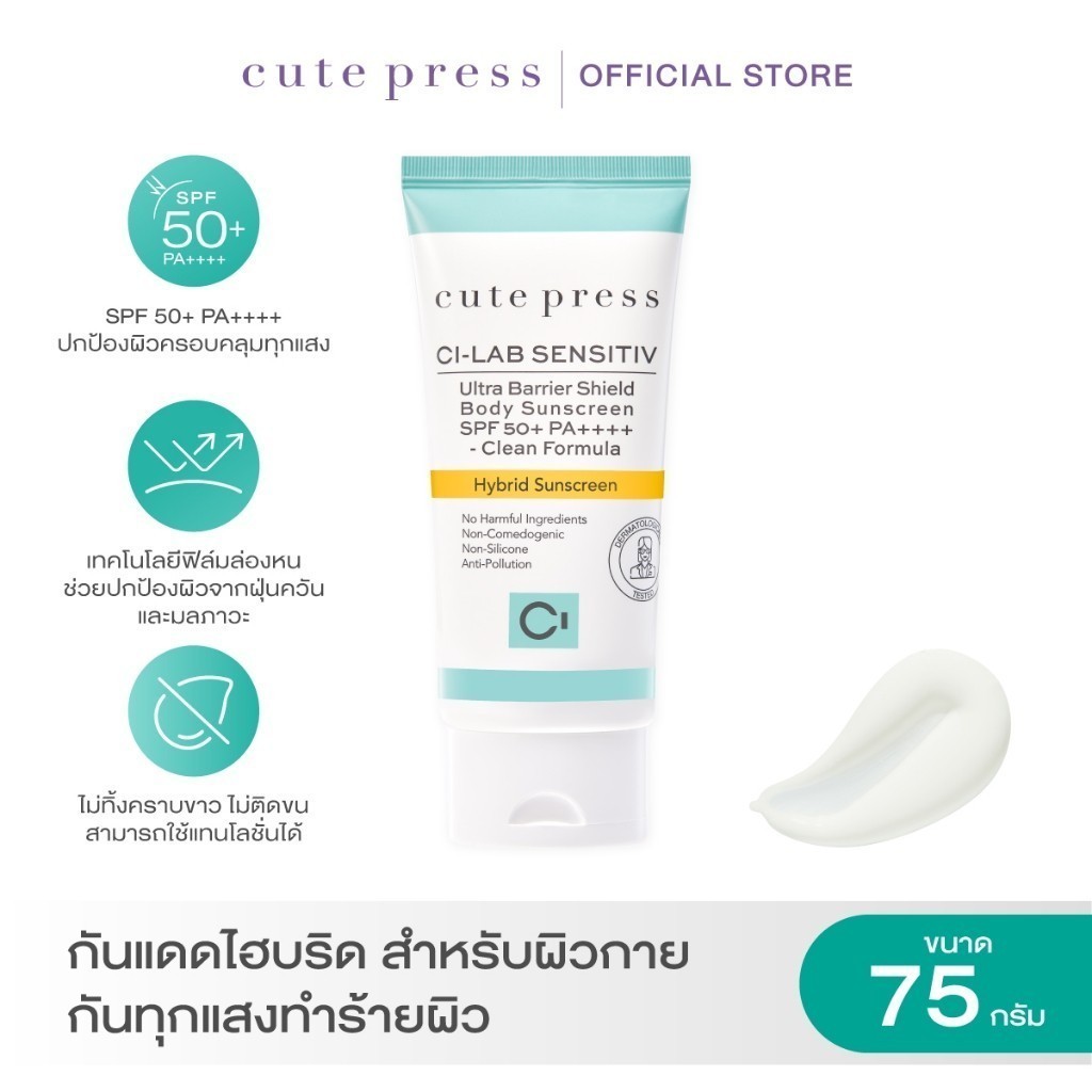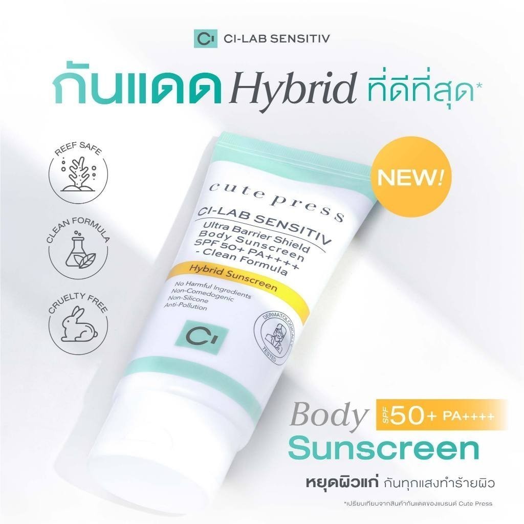 CUTE PRESS CI-LAB ULTRA BARRIER SHIELD BODY SUNSCREEN SPF50+ PA++++ 75g กันแดดไฮบริด สำหรับผิวกาย กันทุกแสงทำร้ายผิว