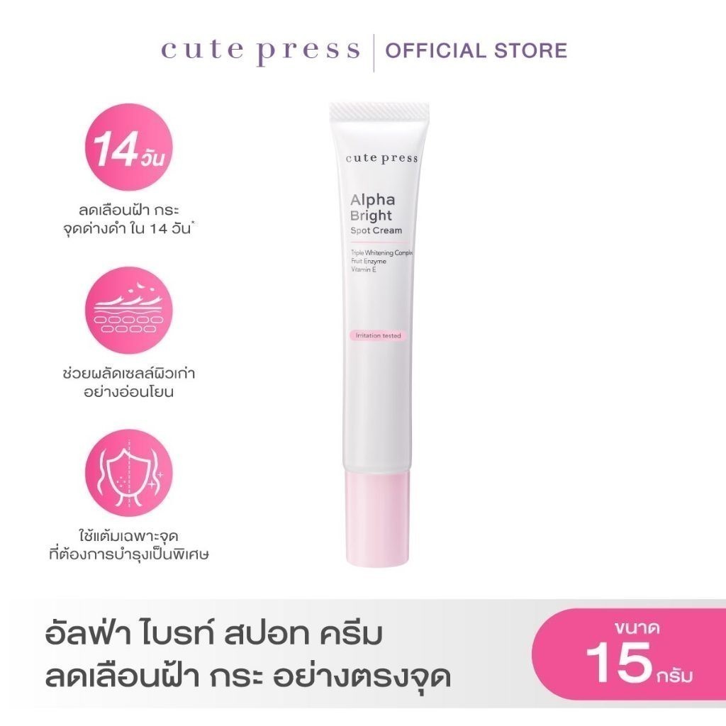 CUTE PRESS ALPHA BRIGHT SPOT CREAM 15 g (ครีมลดฝ้า กระ จุดด่างดำ สำหรับใช้แต้มเฉพาะจุด)