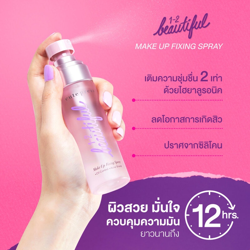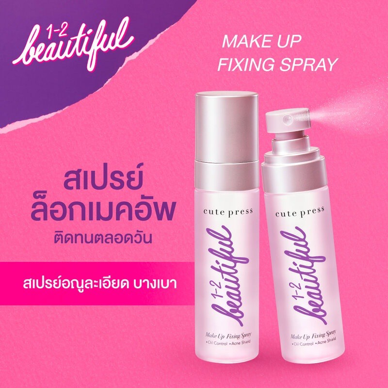 Cute Press 1-2 Beautiful Make Up Fixing Spray 60 ml. คิวท์เพรส สเปรย์สำหรับล็อคเมคอัพบนใบหน้า ♥️♥️