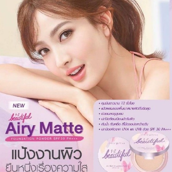 ของเเท้ Cute Press 1-2 Beautiful Airy Matte Foundation Powder SPF 30 PA+++ คิวท์เพรส แป้งพัฟ