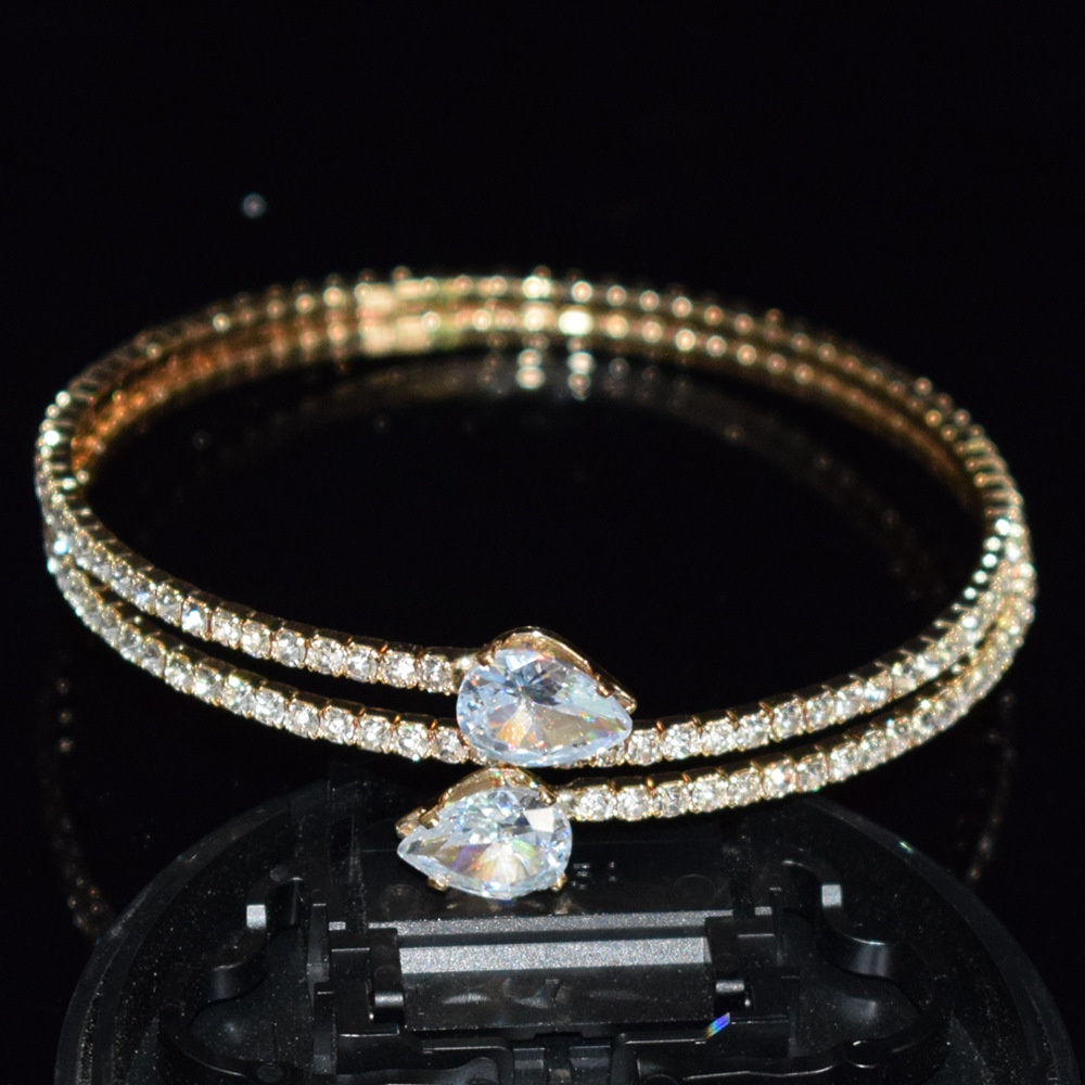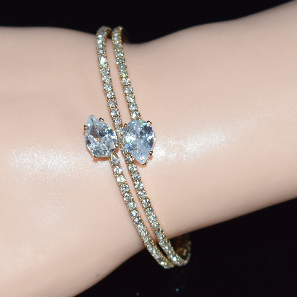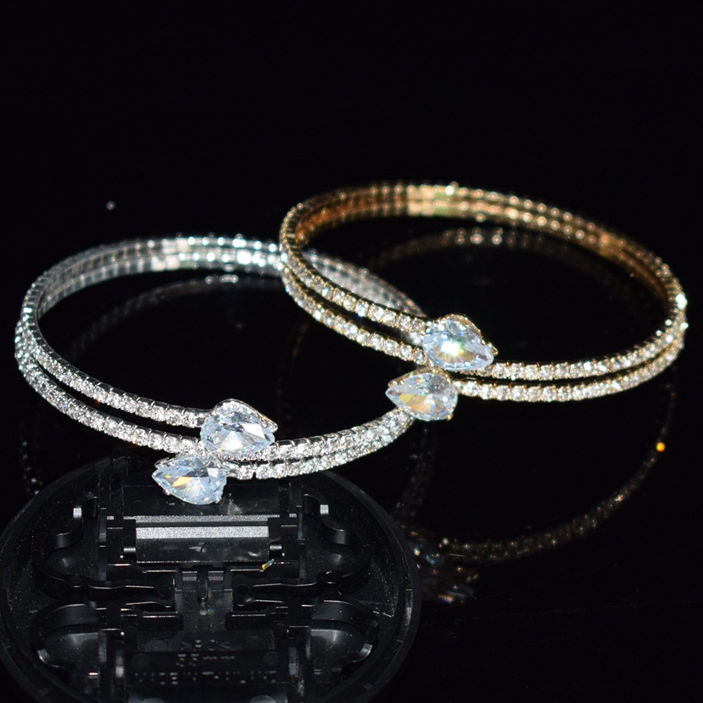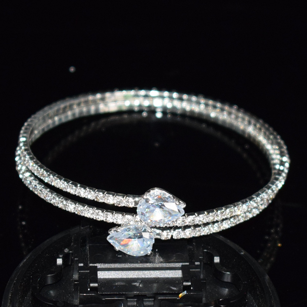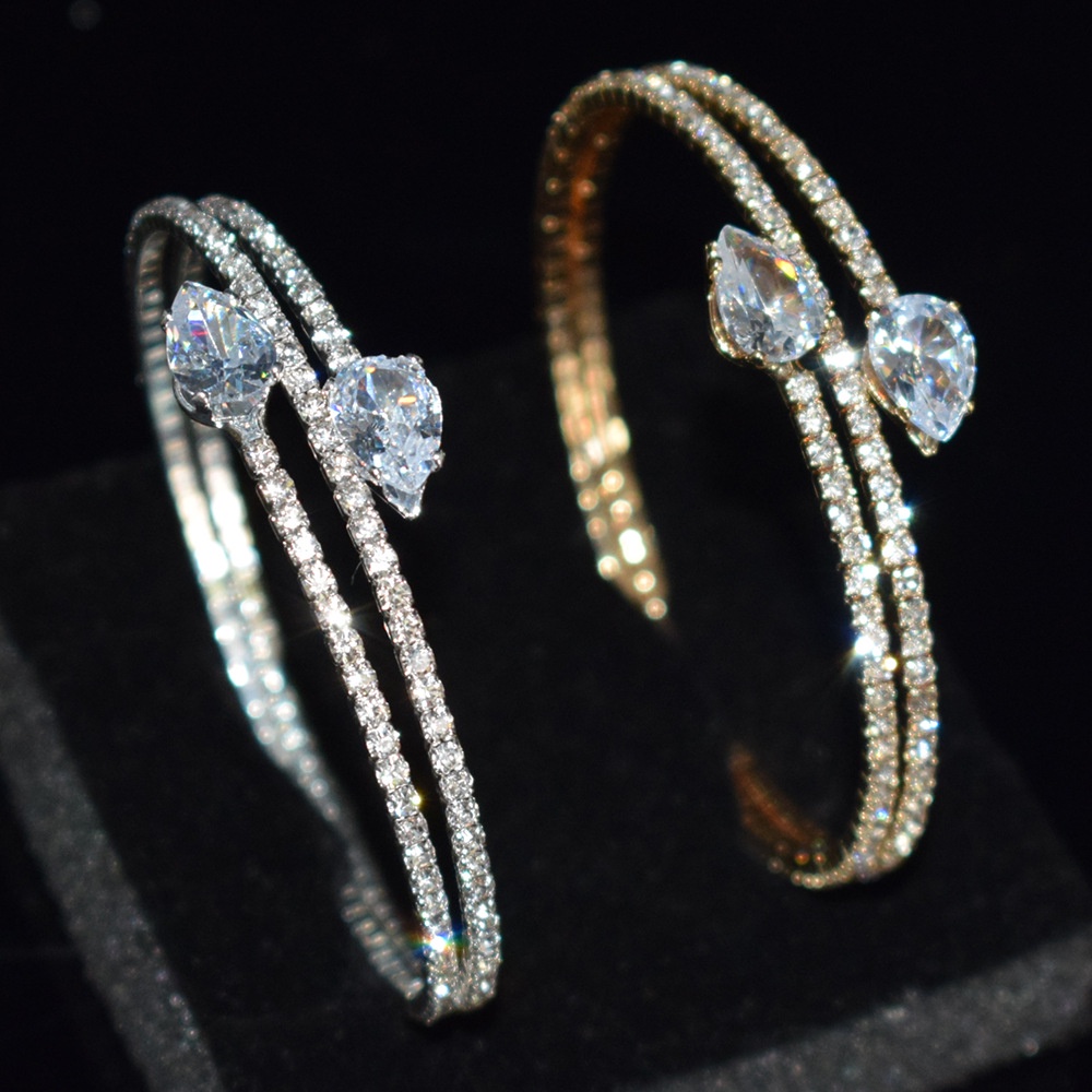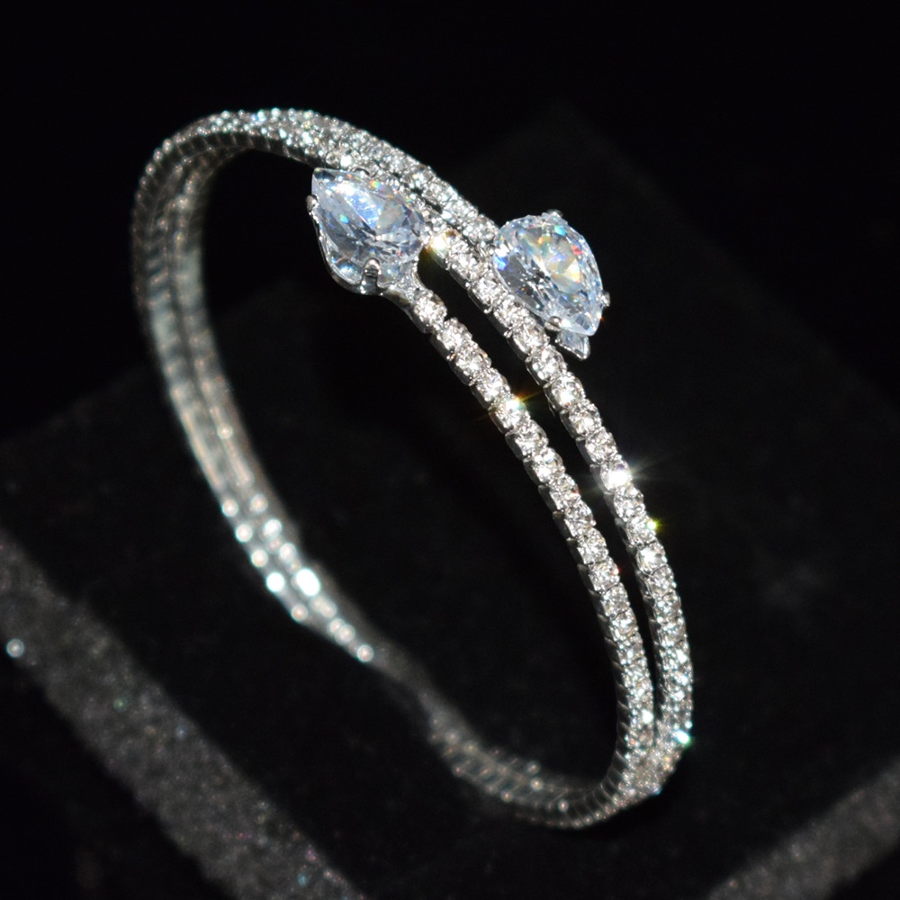 เครื่องประดับ สร้อยข้อมือ ประดับเพชร แบบเปิด แฟชั่นสําหรับสตรี