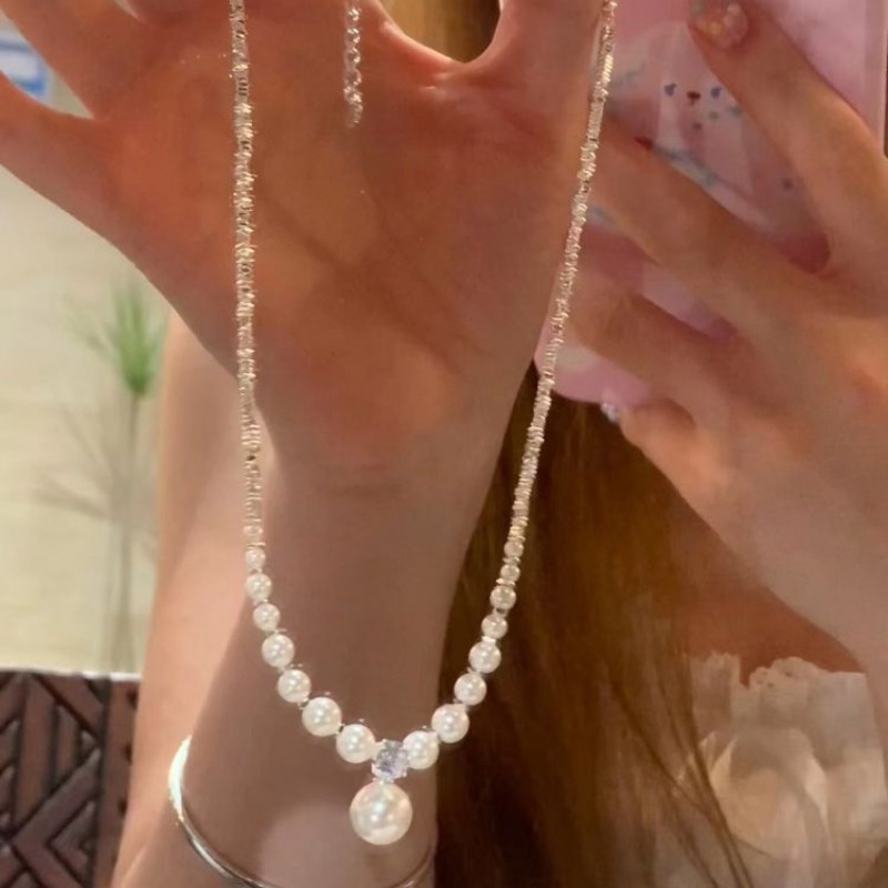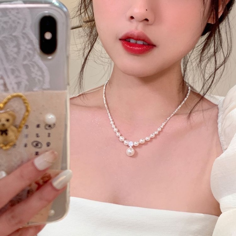 สร้อยคอ ประดับไข่มุกเทียม เพชรน้ํา ไหปลาร้า สไตล์เกาหลี หรูหรา สําหรับผู้หญิง