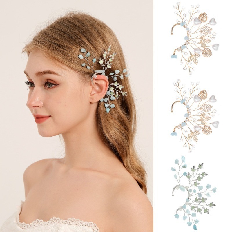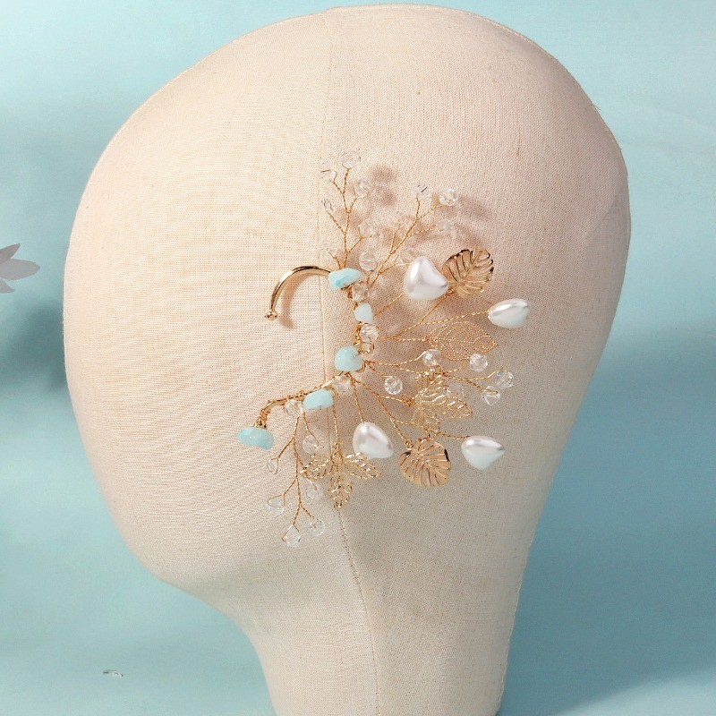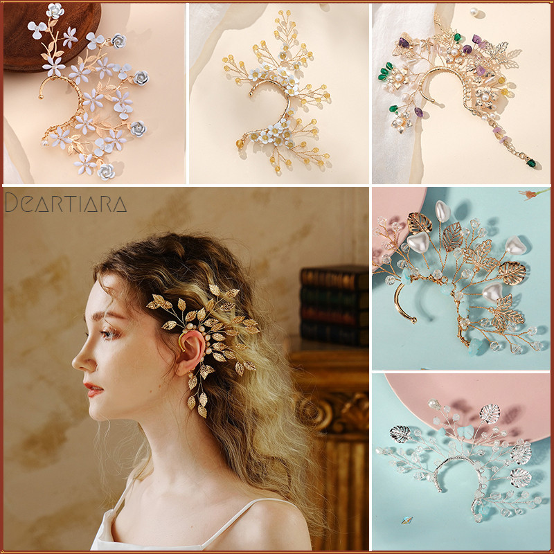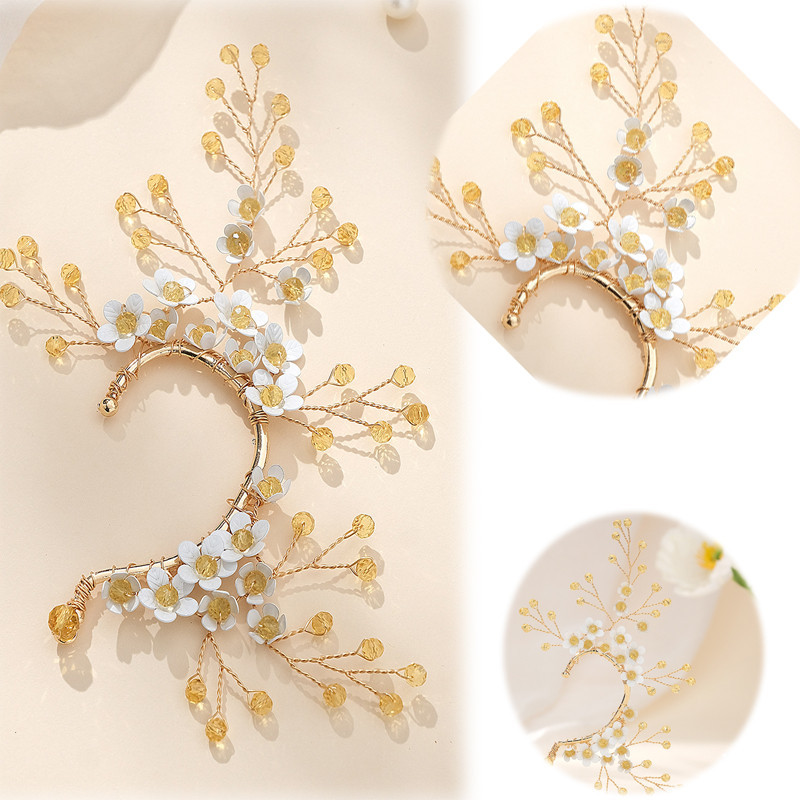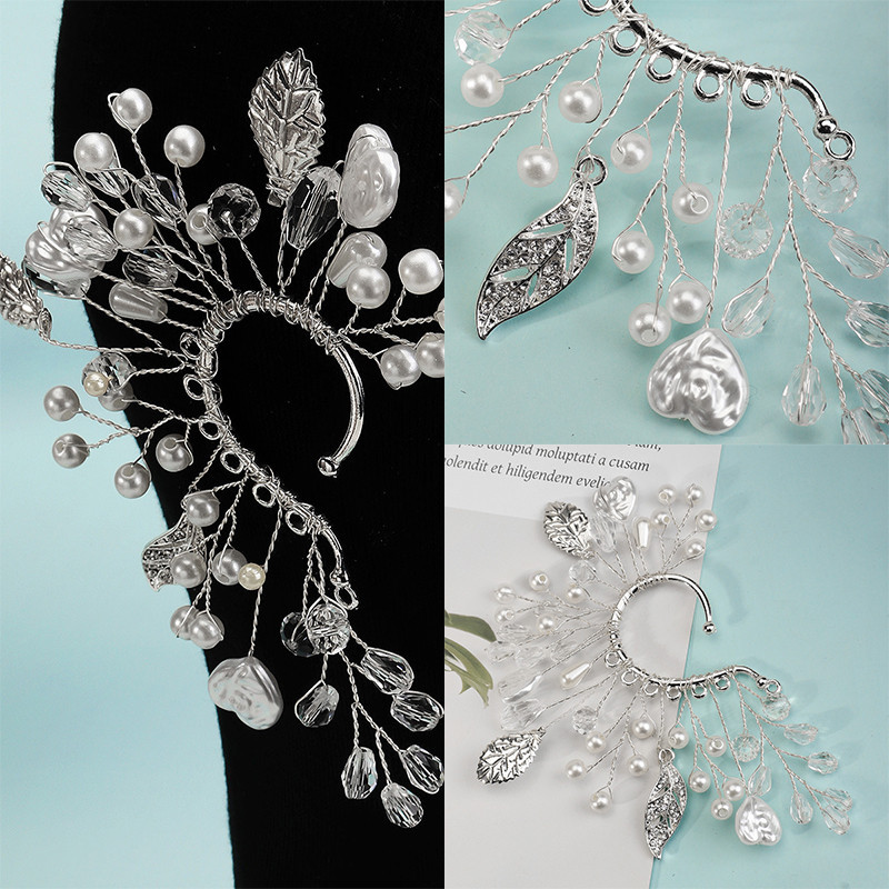 ต่างหูคริสตัล รูปดอกไม้ และไข่มุก แฮนด์เมด สําหรับเจ้าสาว 1 ชิ้น
