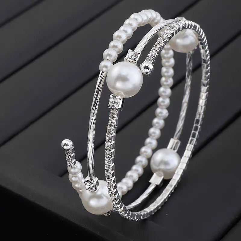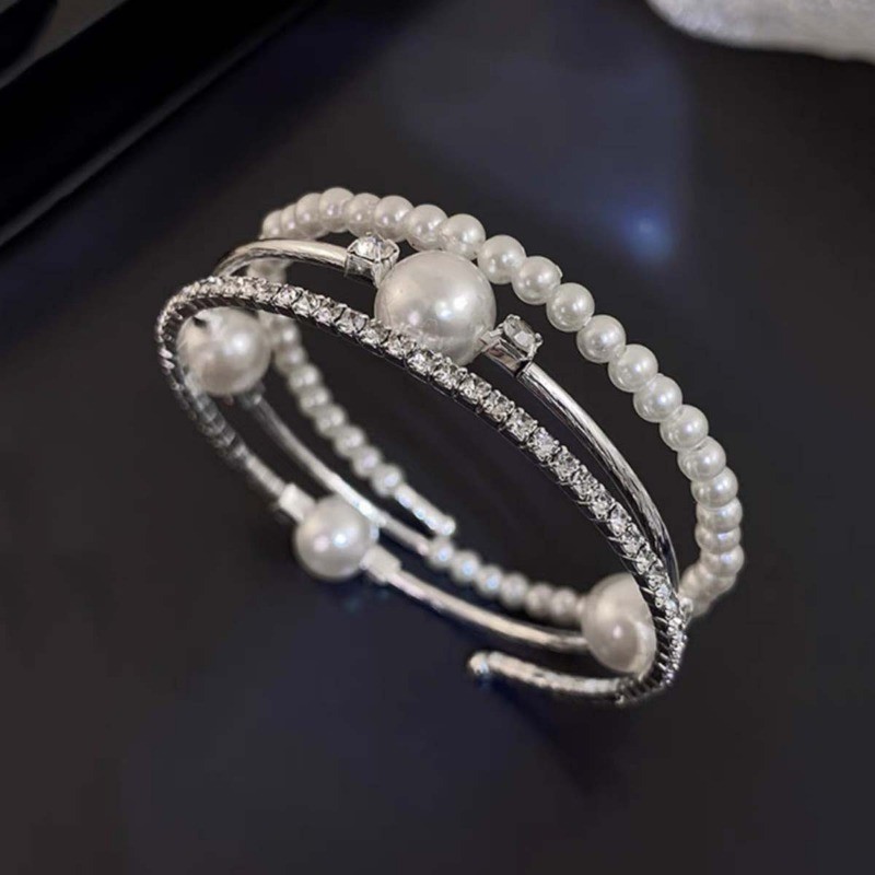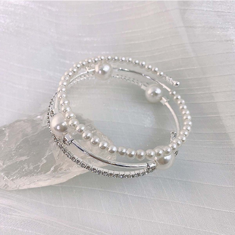 3 ชั้น มุก พลอยเทียม สร้อยข้อมือ ผู้หญิง แฟชั่นวินเทจ สร้อยข้อมือไขว้ เวอร์ชั่นเกาหลี