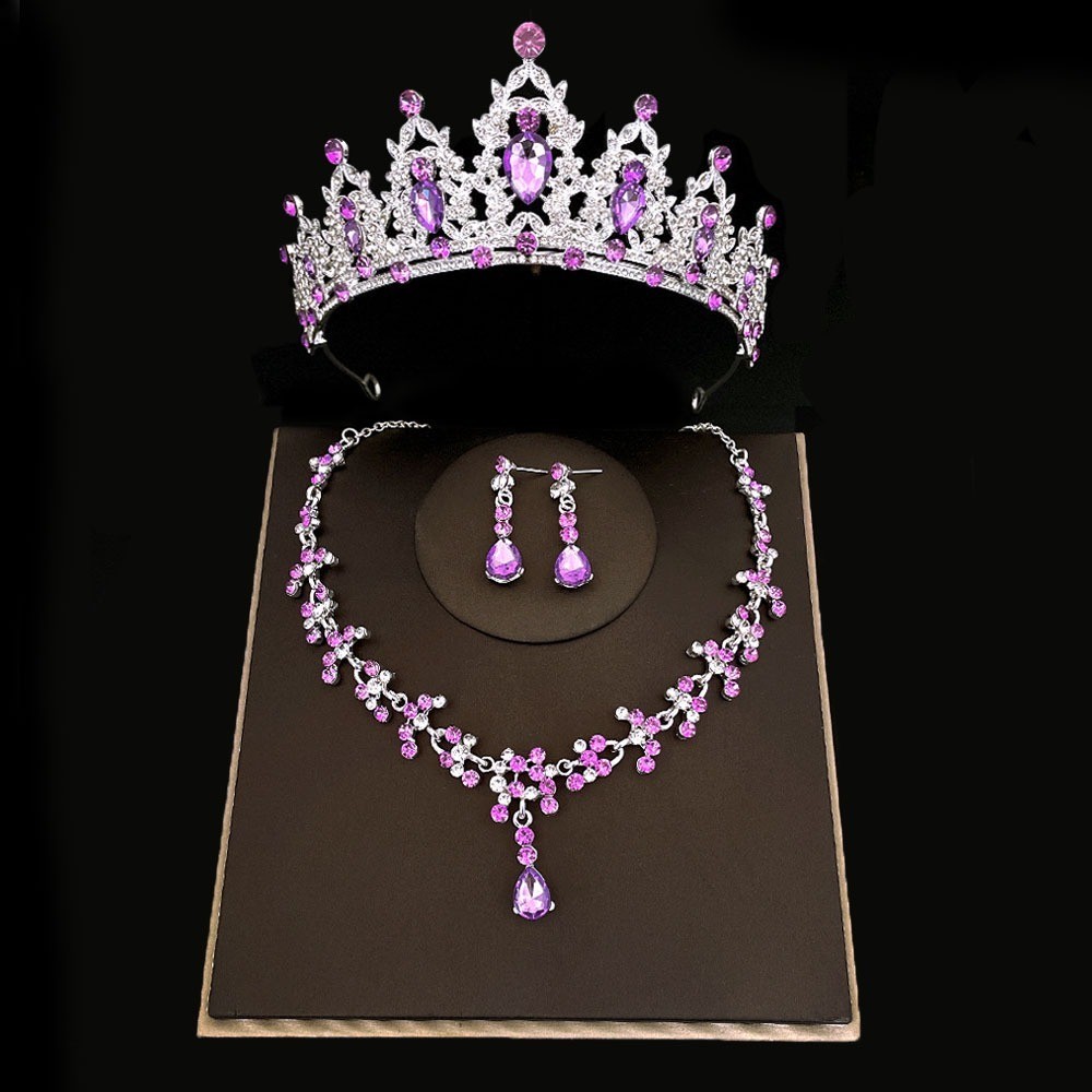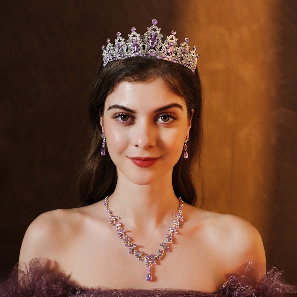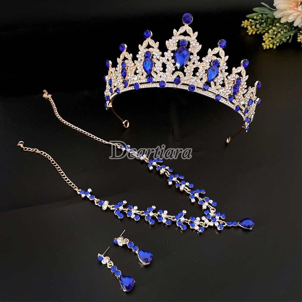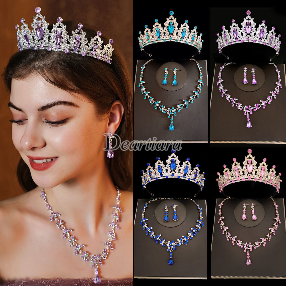 ชุดเครื่องประดับ สร้อยคอ ต่างหู มงกุฎ ประดับเพชรเทียม แฟชั่นเจ้าสาว สไตล์ยุโรป และอเมริกา