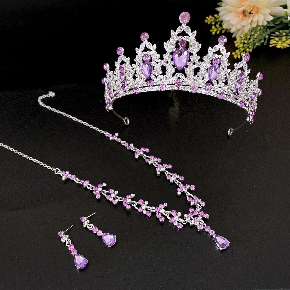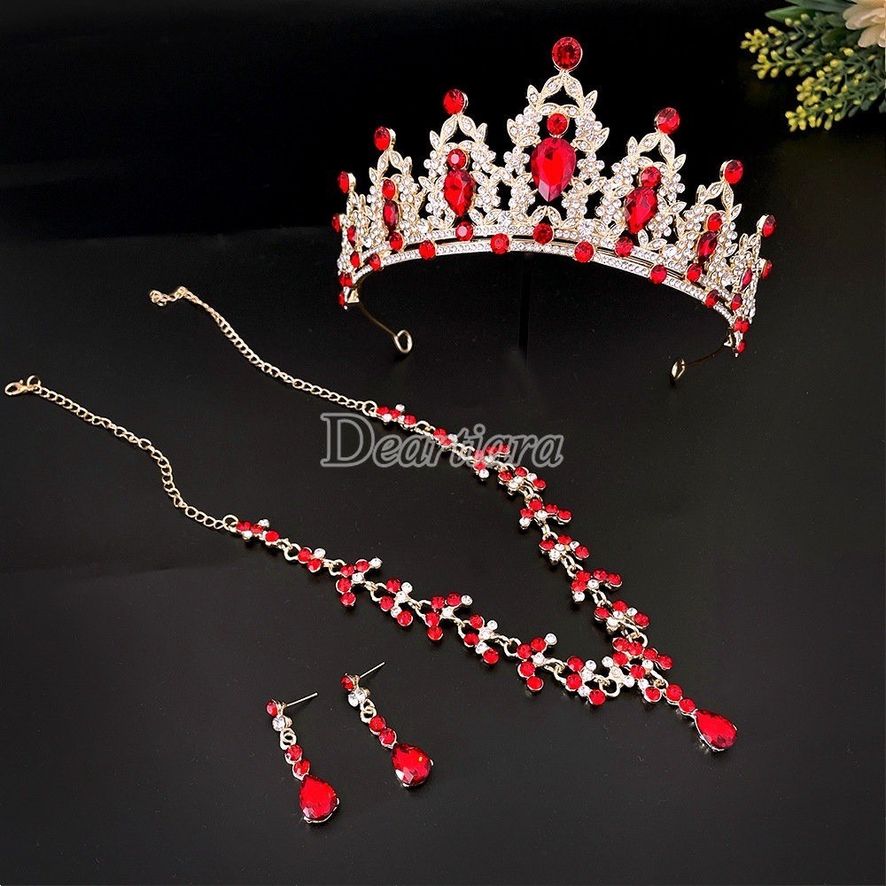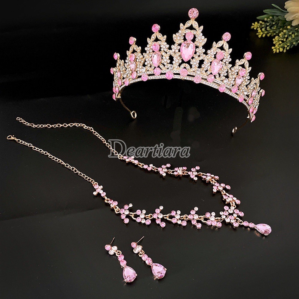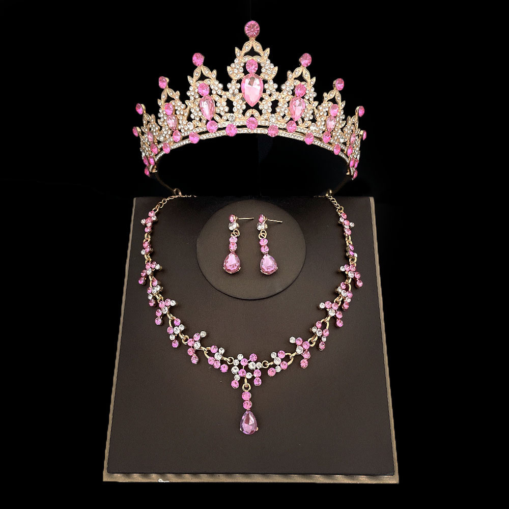 ชุดเครื่องประดับ สร้อยคอ ต่างหู มงกุฎ ประดับเพชรเทียม แฟชั่นเจ้าสาว สไตล์ยุโรป และอเมริกา