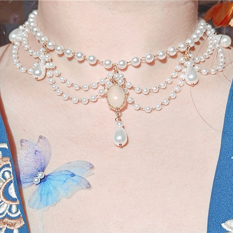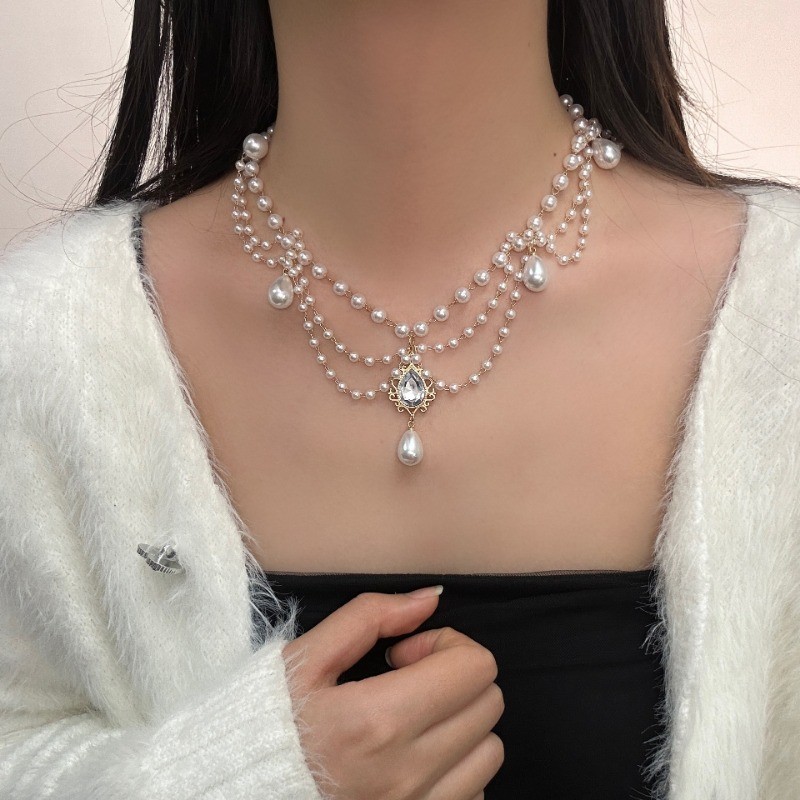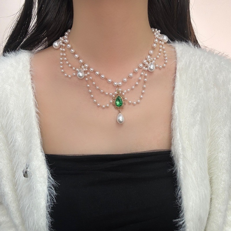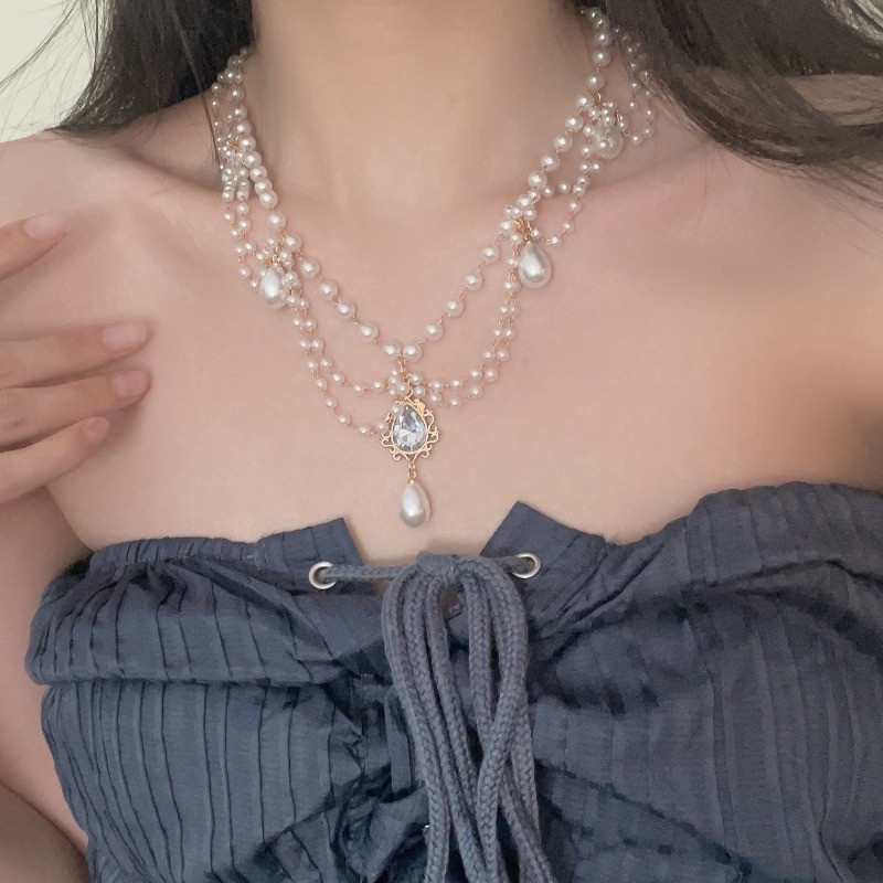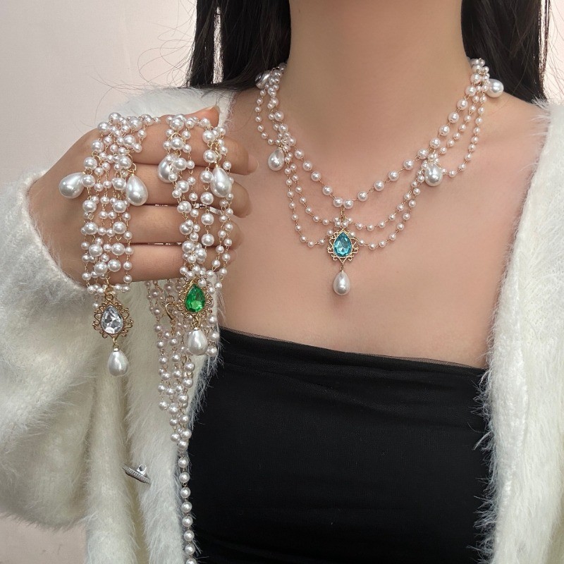 สร้อยคอพู่มุกเทียมหลายชั้นสไตล์บาร็อค
