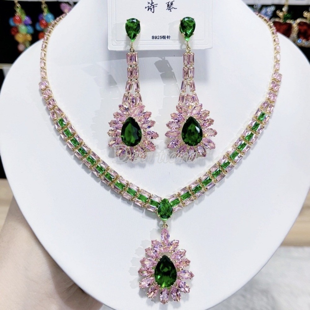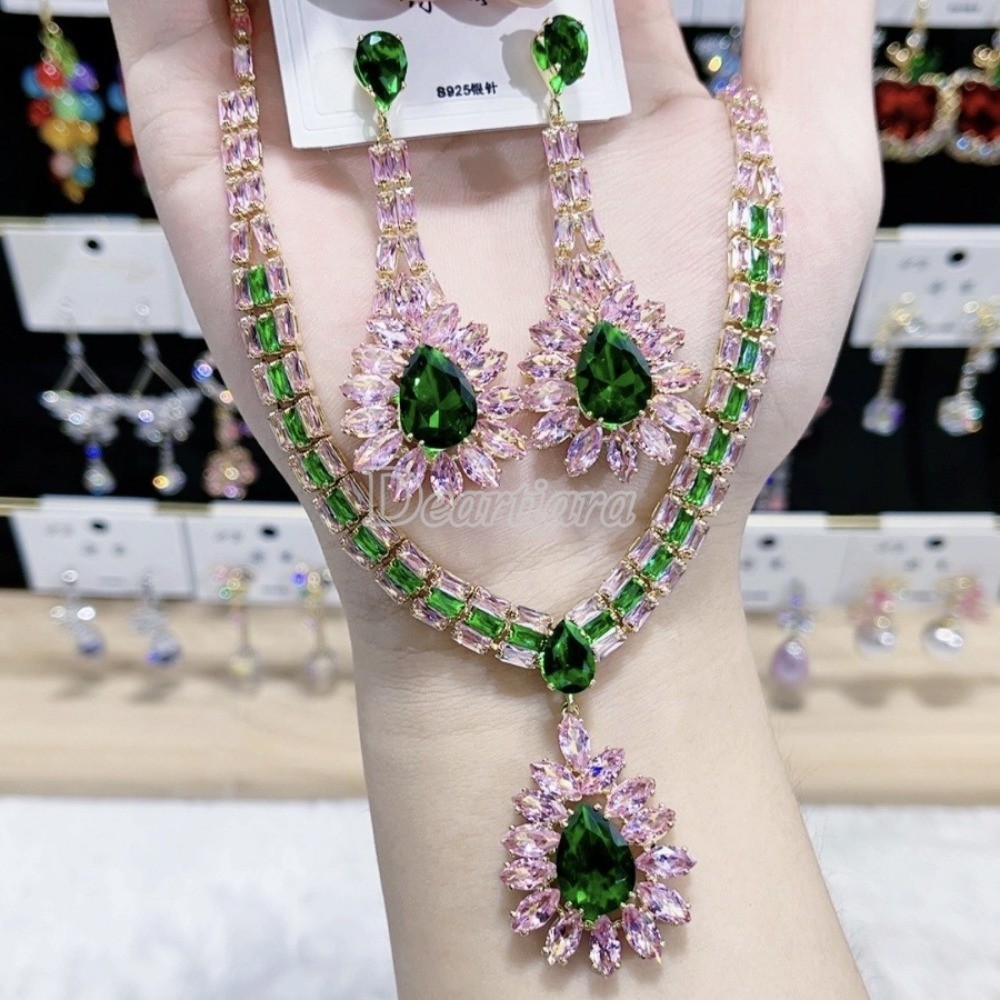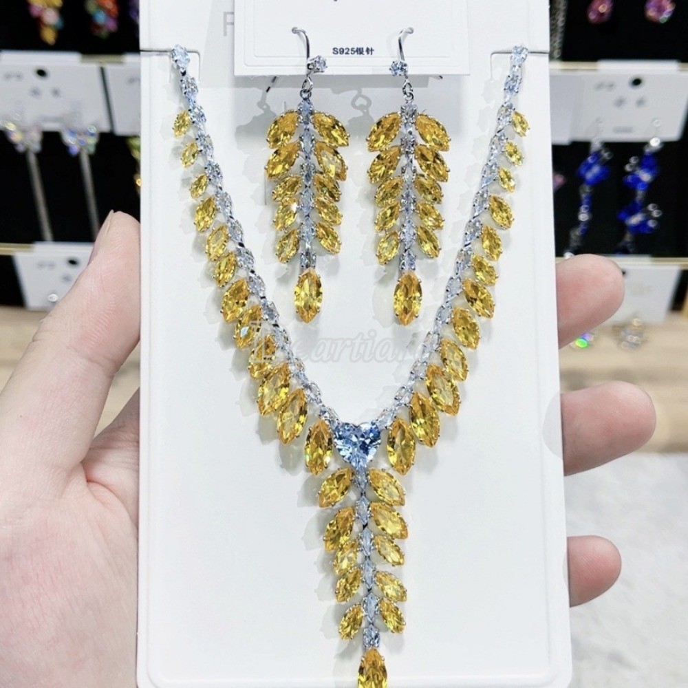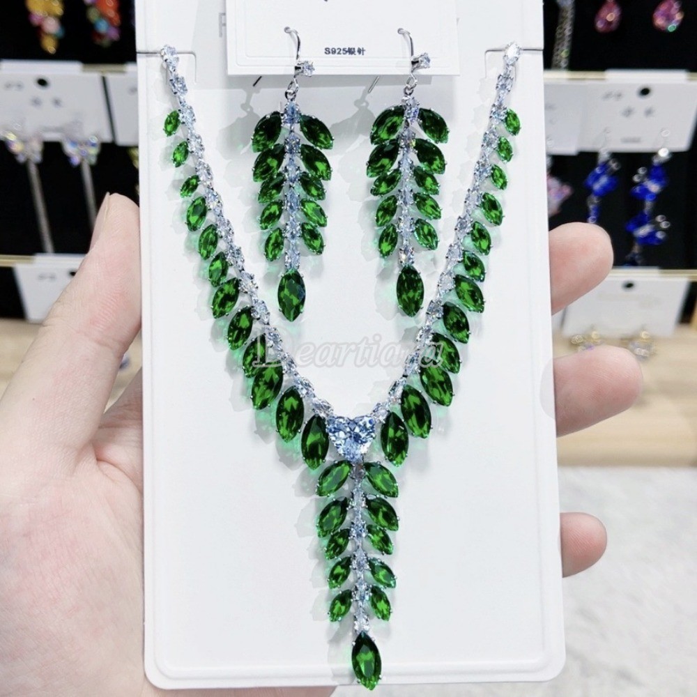 ชุดต่างหูสร้อยคอหรูหราเพทายที่ทันสมัยและอินเทรนด์สวมใส่สร้อยคอหูข้าวสาลีหนักอารมณ์ระดับไฮเอนด์