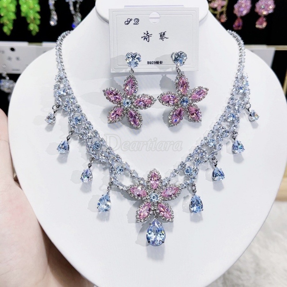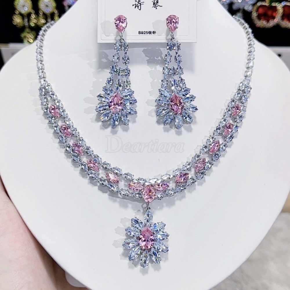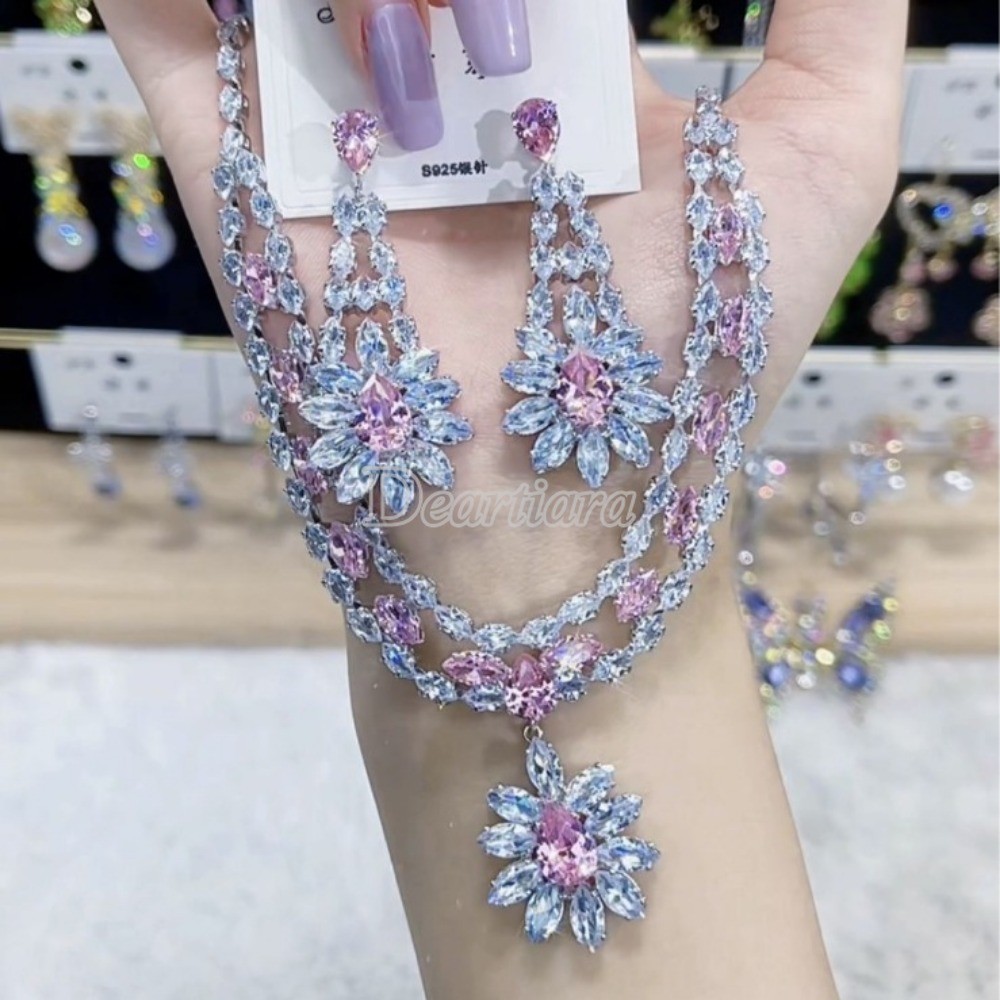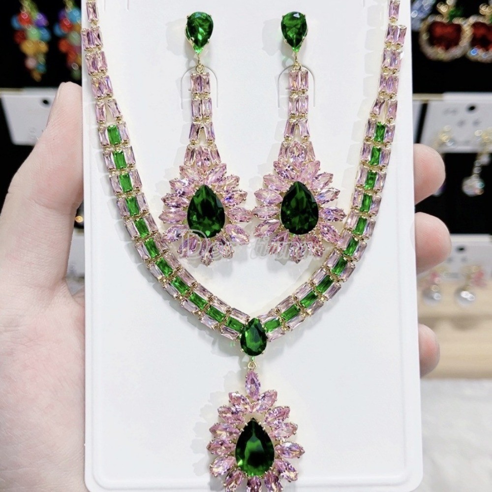 ชุดต่างหูสร้อยคอหรูหราเพทายที่ทันสมัยและอินเทรนด์สวมใส่สร้อยคอหูข้าวสาลีหนักอารมณ์ระดับไฮเอนด์