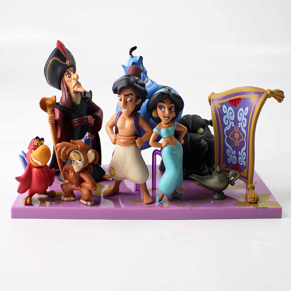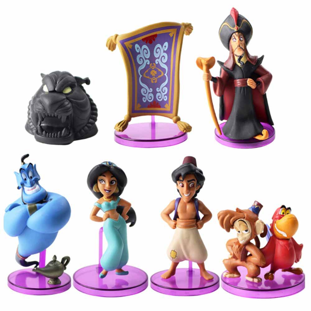 7 ชิ้น/ล็อต Tales Aladdin รูปของเล่นเจ้าหญิงจัสมินลิง Abu Parrot Lago Genie Jafar ถ้ํา Wonders ตุ๊กตา