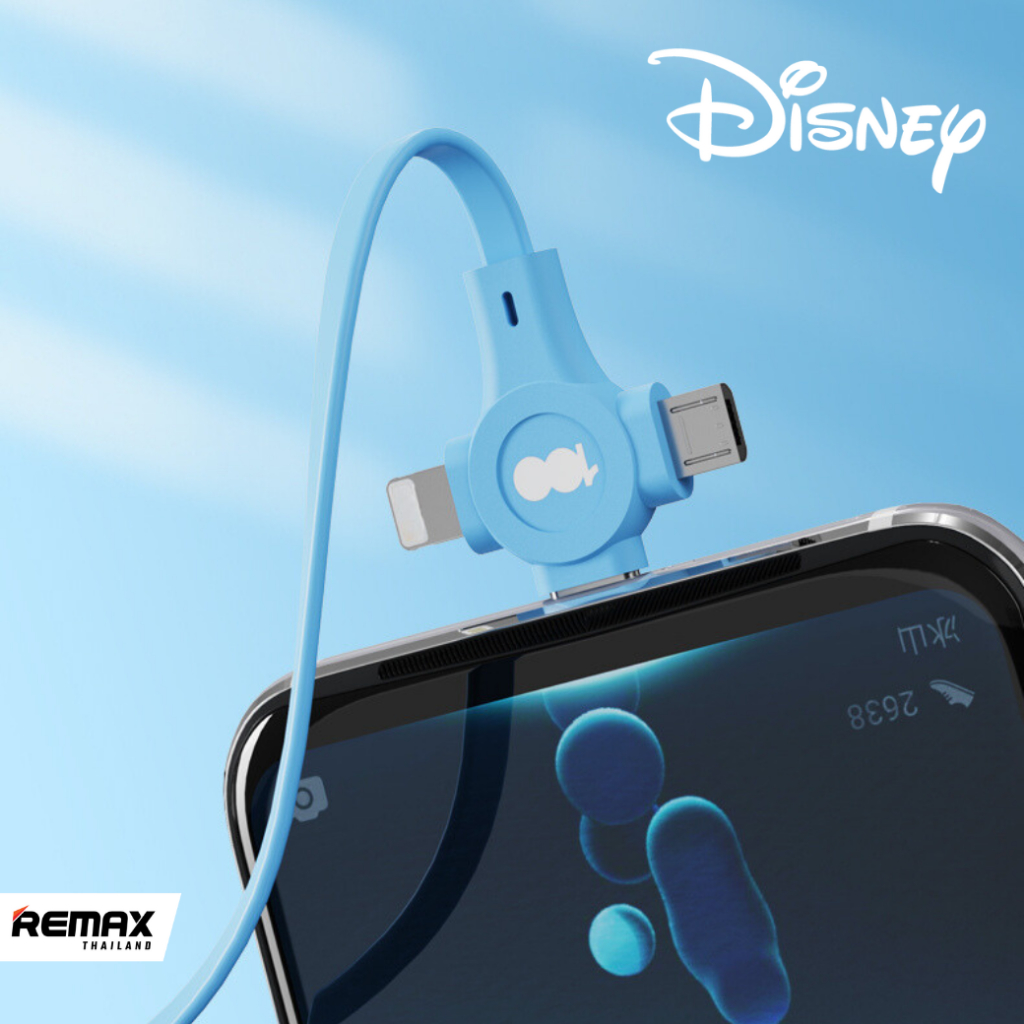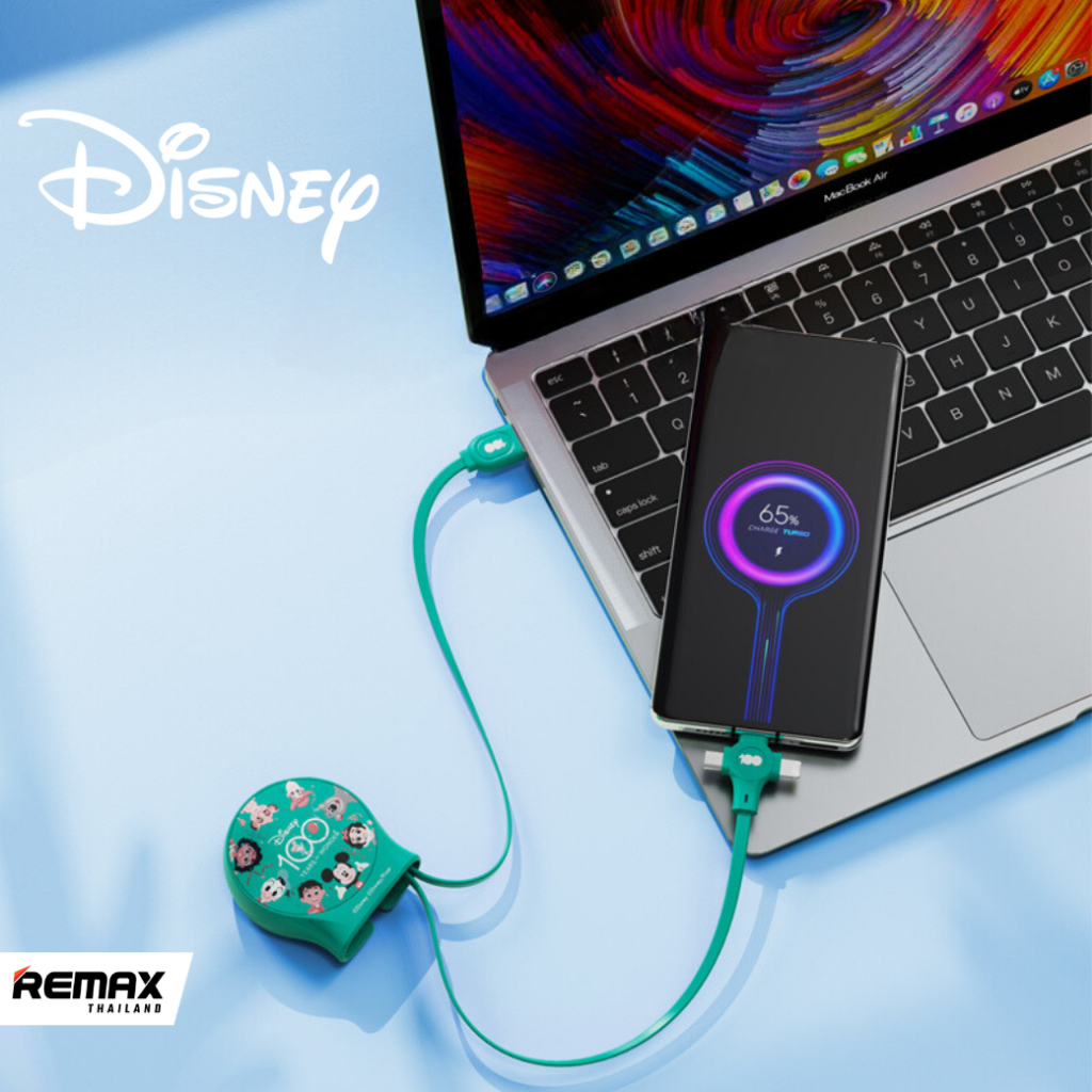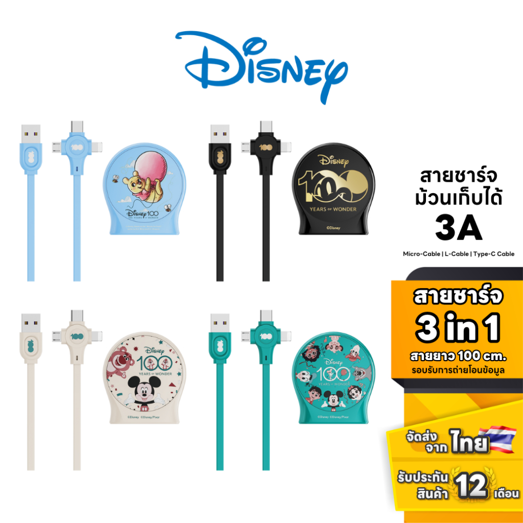 Disney Cable 3in1 QS-C01 – สายชาร์จแบบ 3 in 1 ม้วนเก็บได้ ลายการ์ตูน
