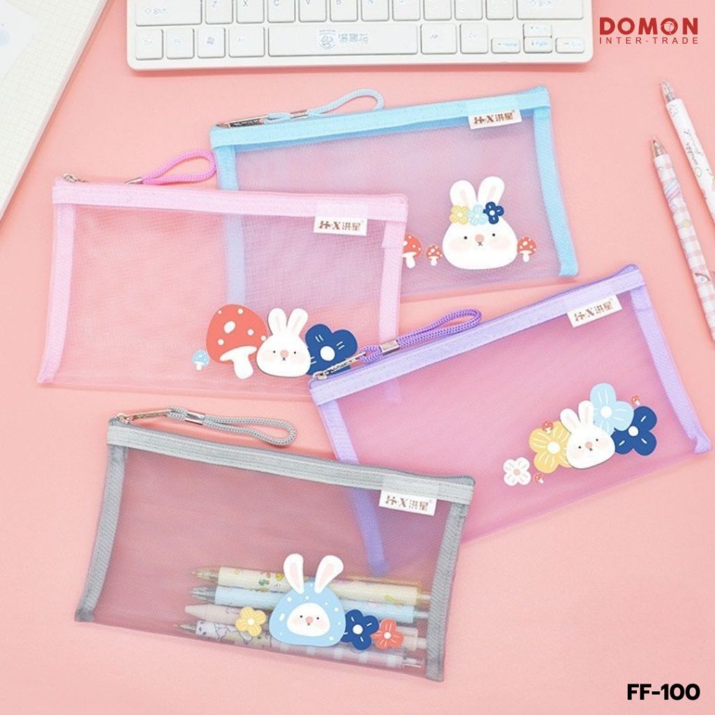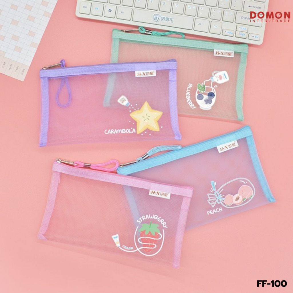 FF-100🍒 กระเป๋าดินสอตาข่าย ลายการ์ตูน สำหรับเก็บ อุปกรณ์เครื่องเขียน พกพาสะดวก