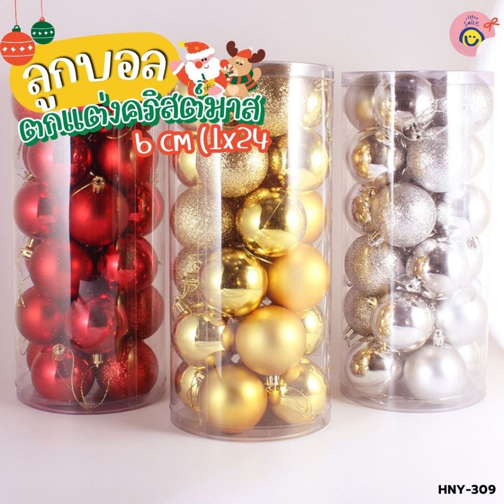 บอลตกแต่งต้นคริสต์มาส 6 cm (24 ลูก) / กล่อง เพิ่มฟีลหรูหราน่ารัก / HNY-309
