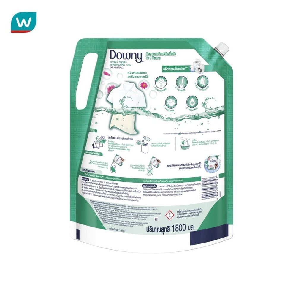 Downy ดาวน์นี่ ผลิตภัณฑ์ซักผ้า สูตรเข้มข้น สำหรับตากผ้าในที่ร่ม คลีน ถุงเติม 1800 มล.
