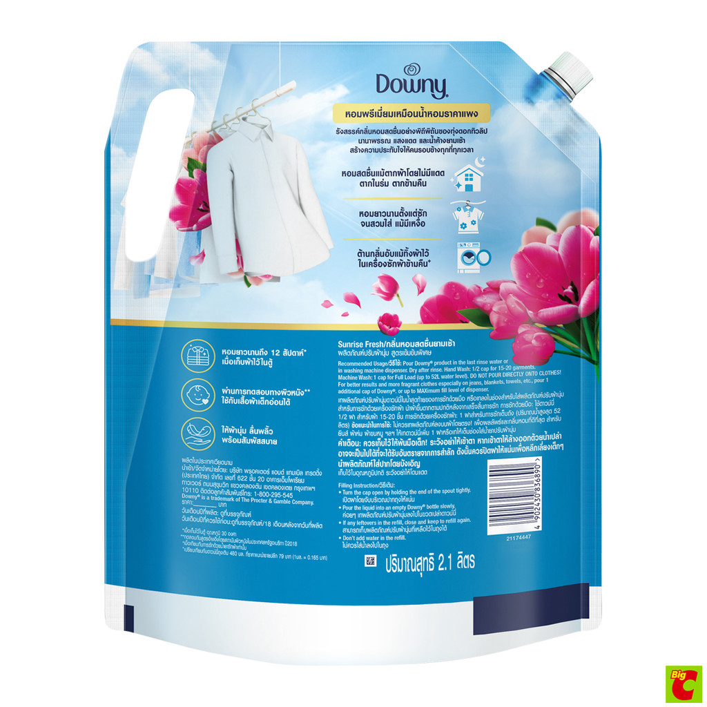 ดาวน์นี่ น้ำยาปรับผ้านุ่ม สูตรเข้มข้นพิเศษ กลิ่นหอมสดชื่นยามเช้า 2.1 ล.