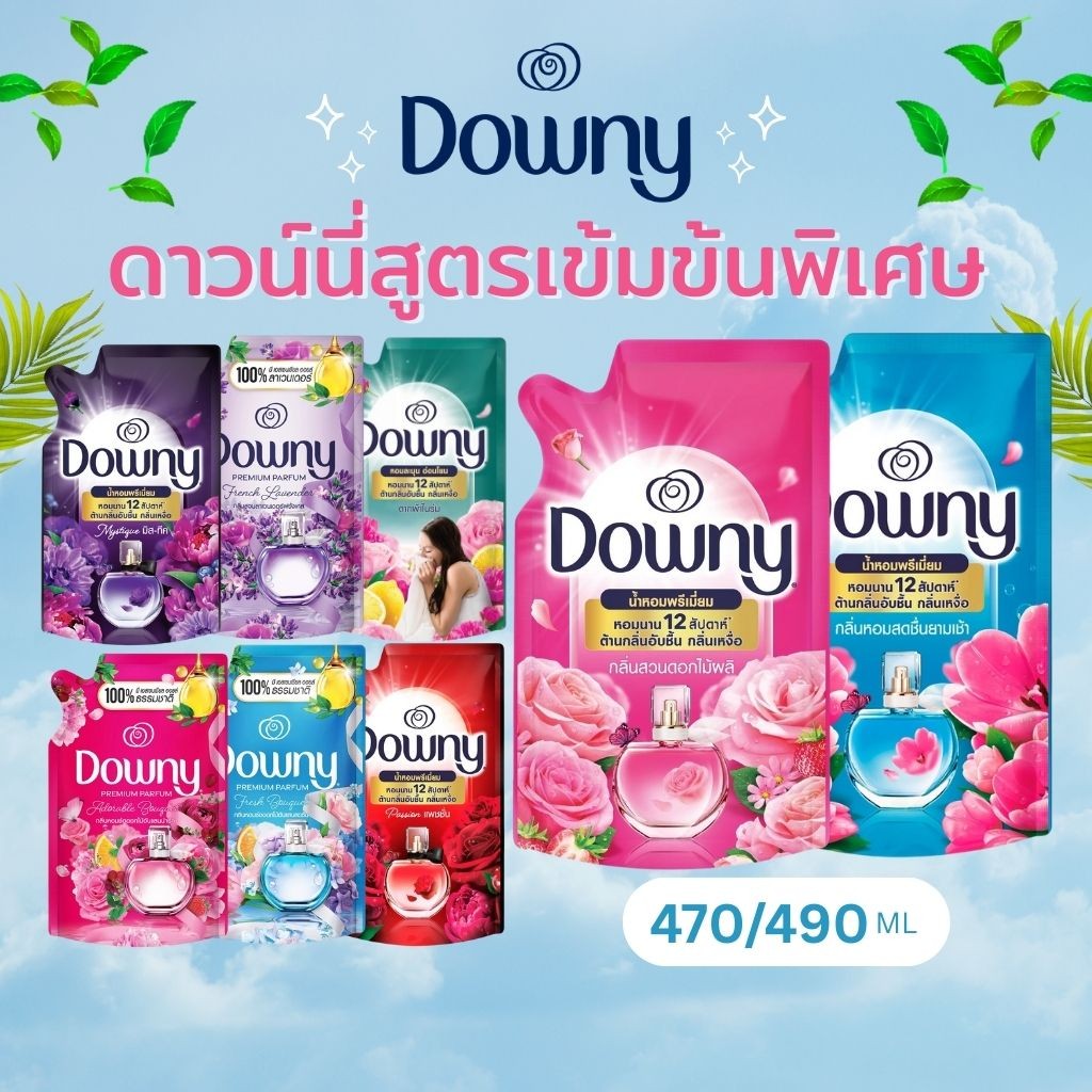 Downy ดาวน์นี่ผลิตภัณฑ์ปรับผ้านุ่มสูตรเข้มข้นพิเศษกลิ่นหอมสดชื่นยามเช้าถุงเติม470มล.แพ็ค2+1
