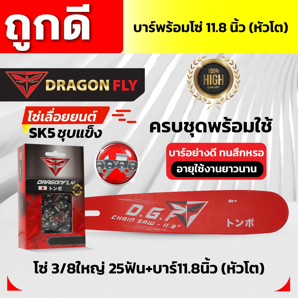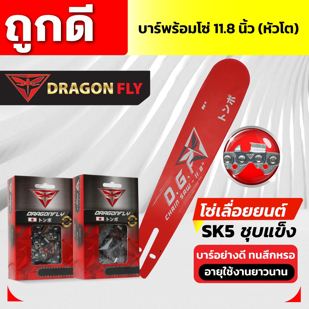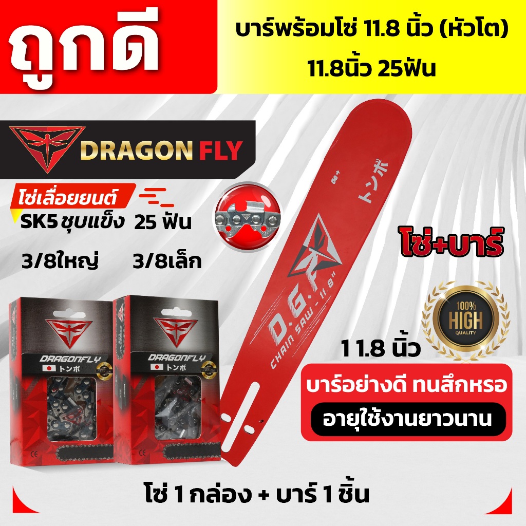 บาร์11.8นิ้ว(หัวโต)+โซ่3/8เล็ก25ฟัน หรือ โซ่3/8ใหญ่25ฟัน บาร์เลื่อยยนต์พร้อมโซ่Dragonfly