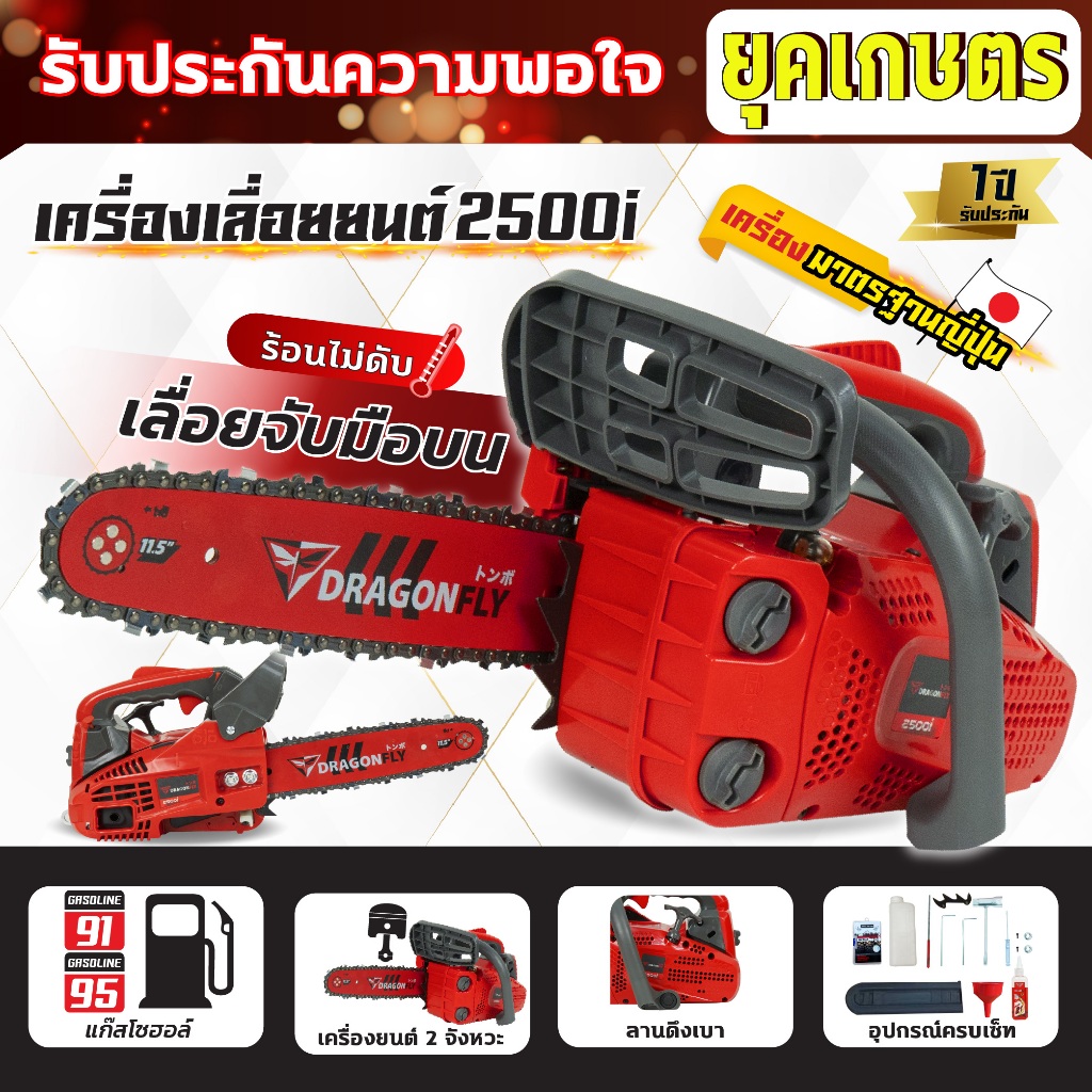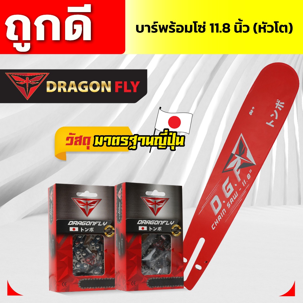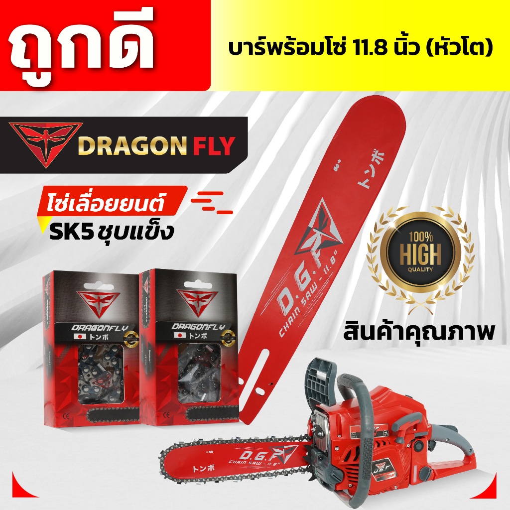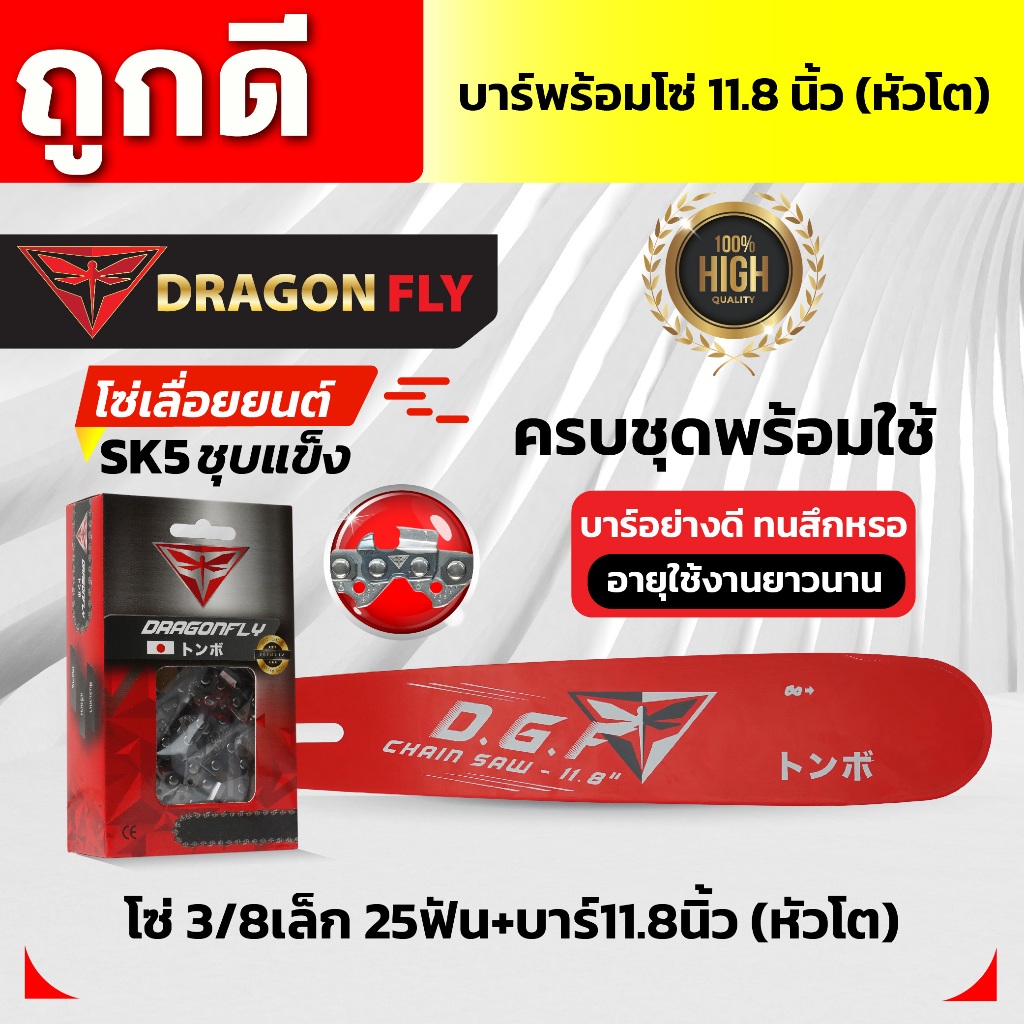 บาร์11.8นิ้ว(หัวโต)+โซ่3/8เล็ก25ฟัน หรือ โซ่3/8ใหญ่25ฟัน บาร์เลื่อยยนต์พร้อมโซ่Dragonfly
