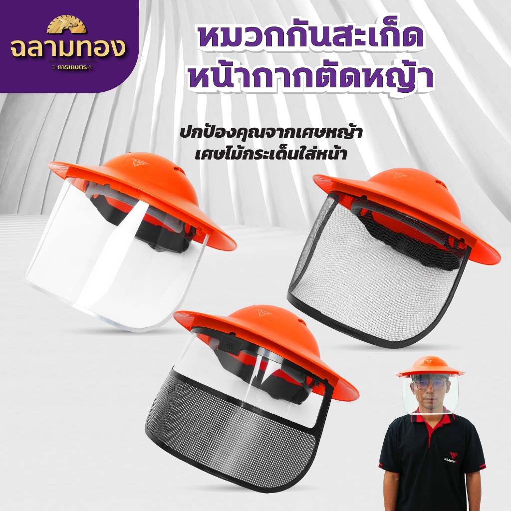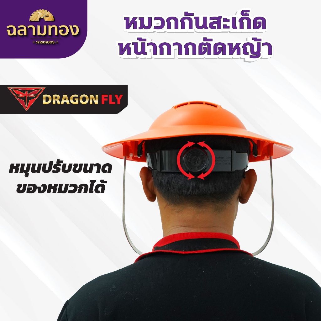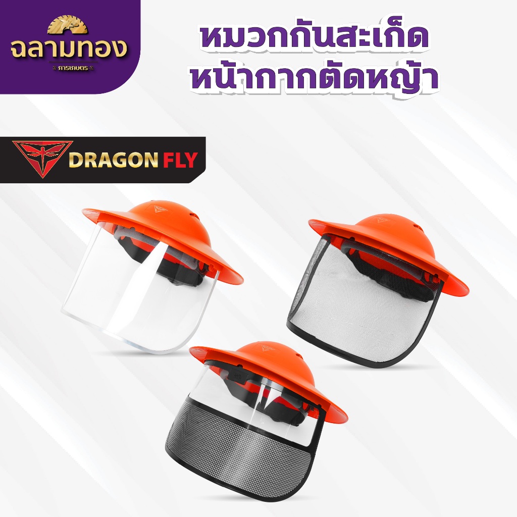 หมวกตัดหญ้า หน้ากากตัดหญ้า Dragonfly ป้องกันสะเก็ดหิน เศษขยะ เศษหญ้า ใบไม้