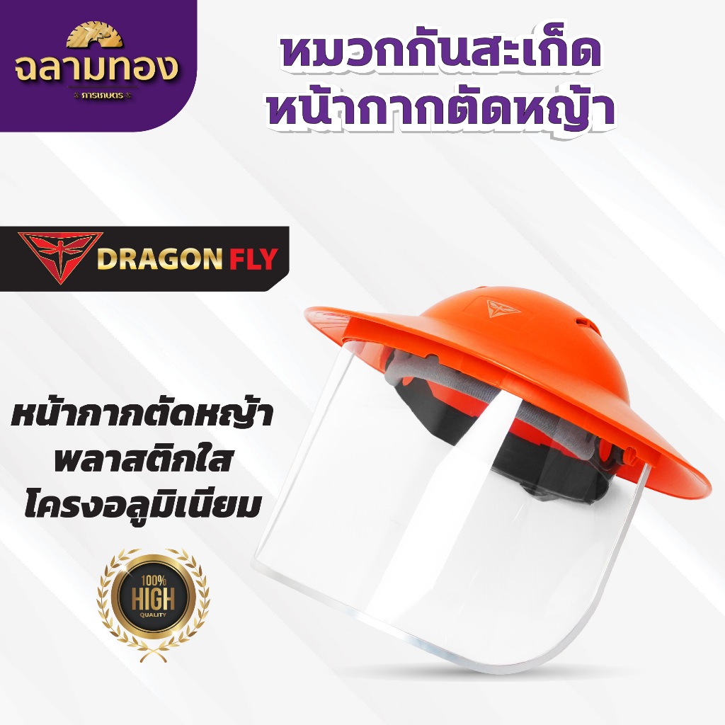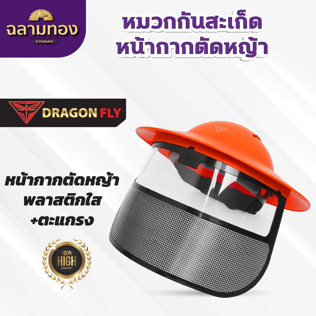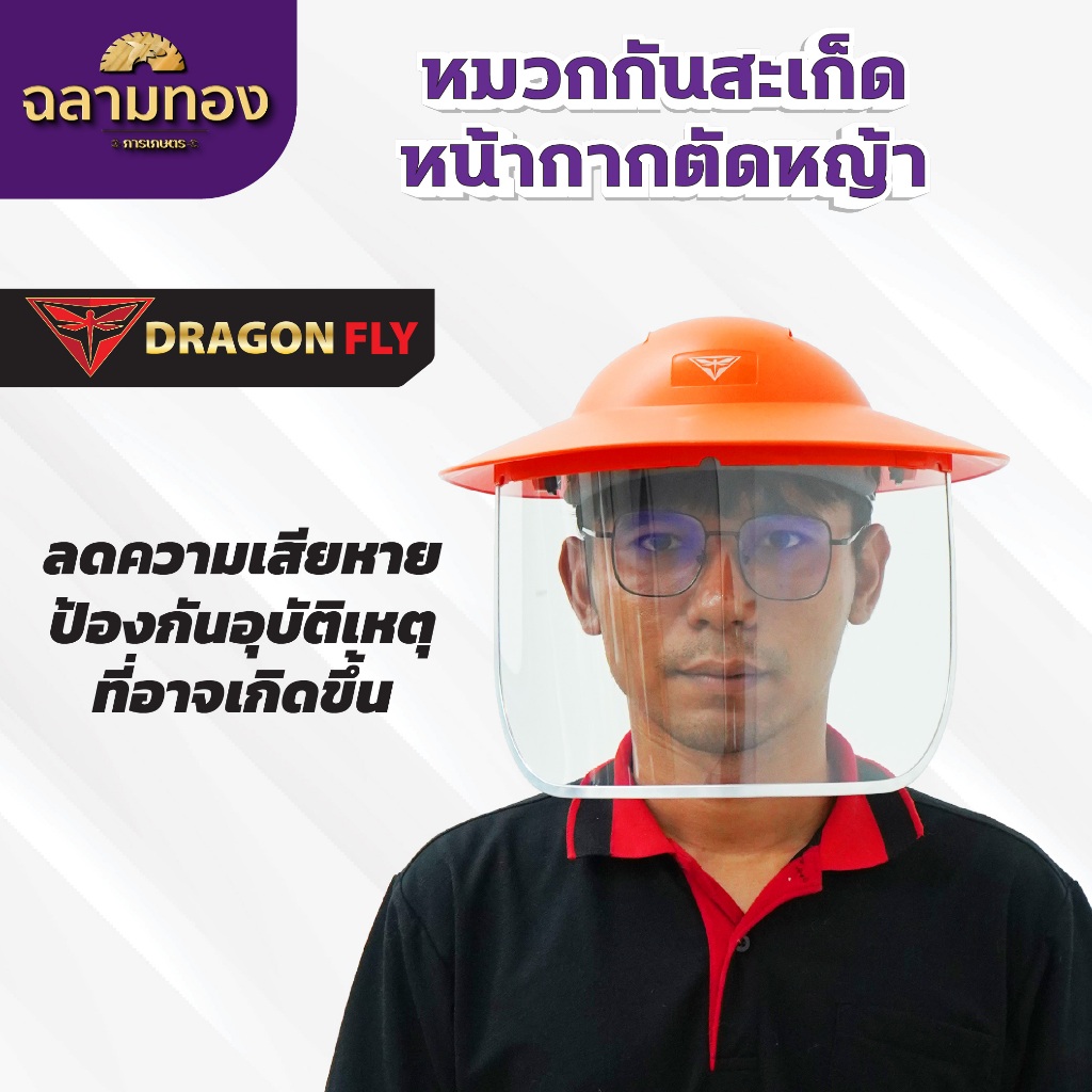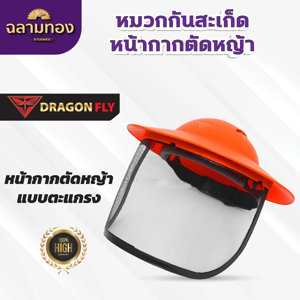 หมวกตัดหญ้า หน้ากากตัดหญ้า Dragonfly ป้องกันสะเก็ดหิน เศษขยะ เศษหญ้า ใบไม้