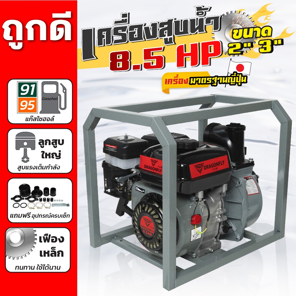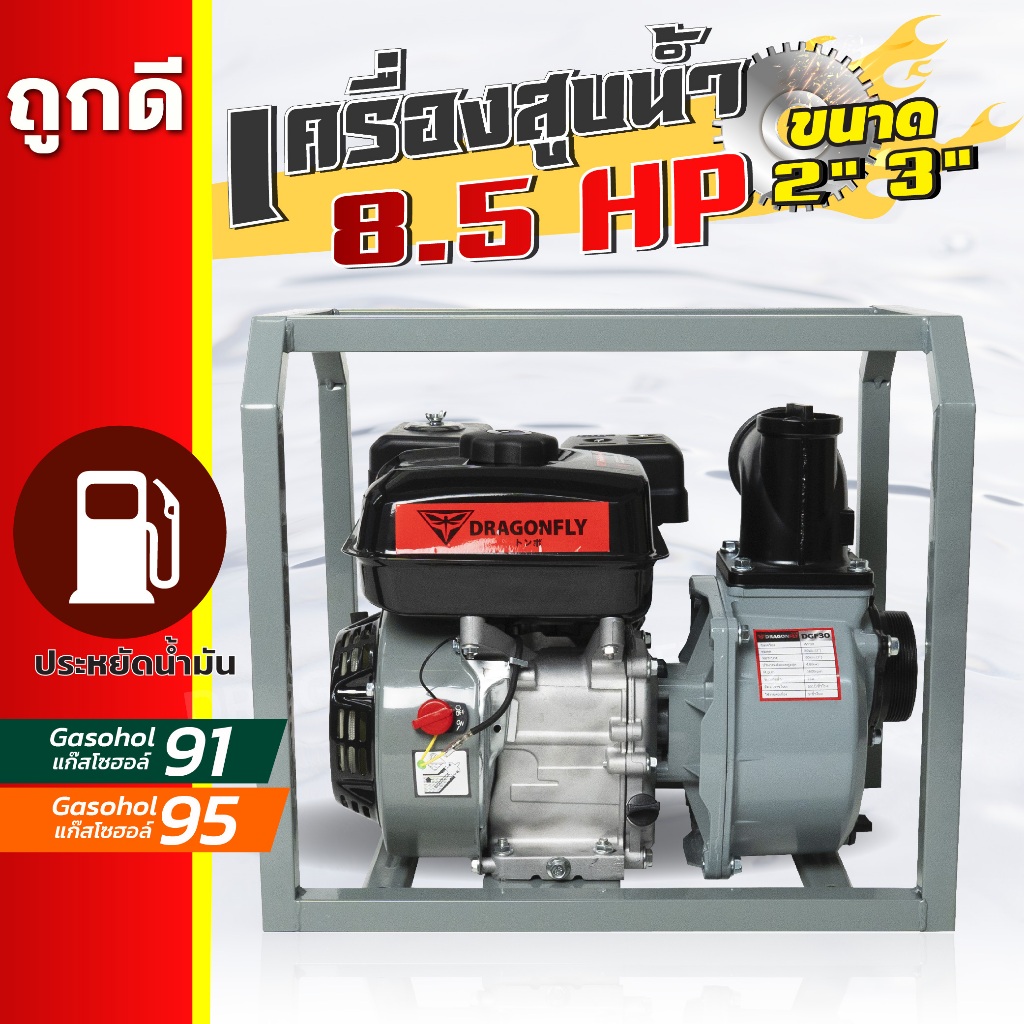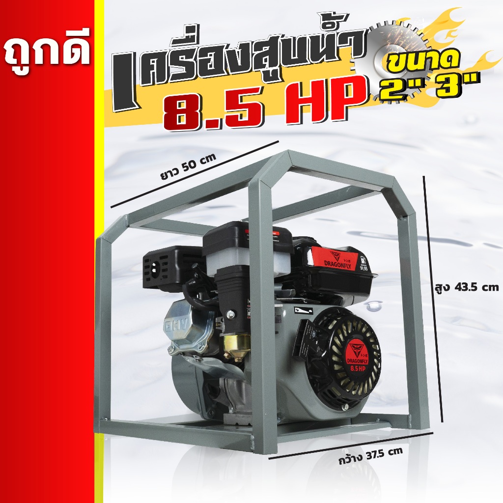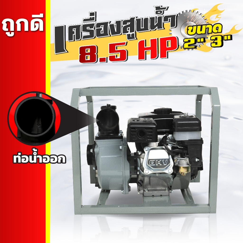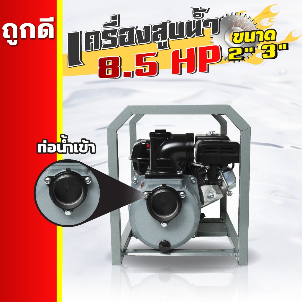 เครื่องสูบน้ำเบนซิน ชนิดเครื่อง 4 จังหวะ 8.5 แรงม้า ชนปั้มท่อเข้า-ออก 2/3 นิ้ว เครื่องสูบน้ำ 8.5แรง