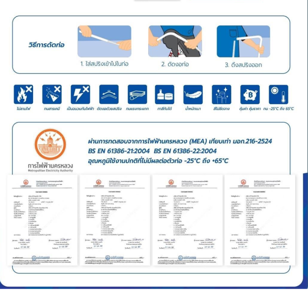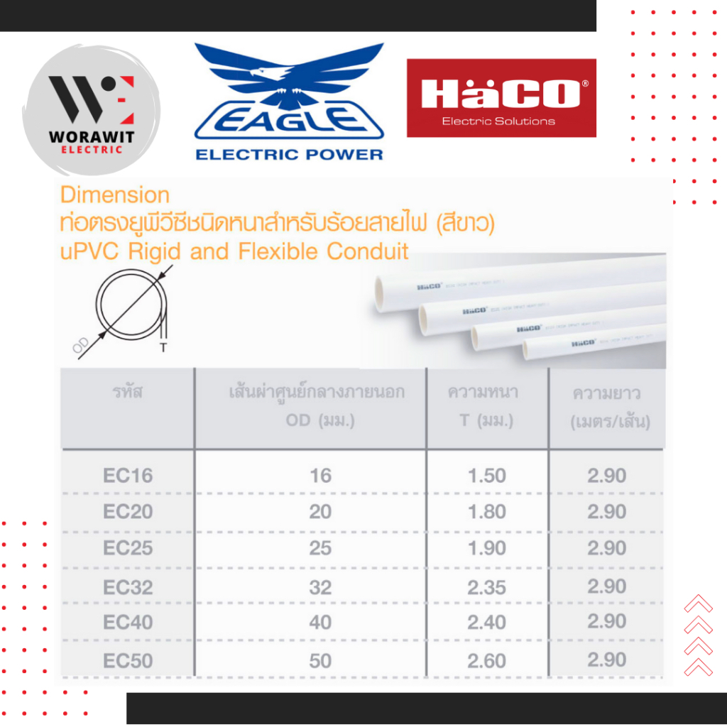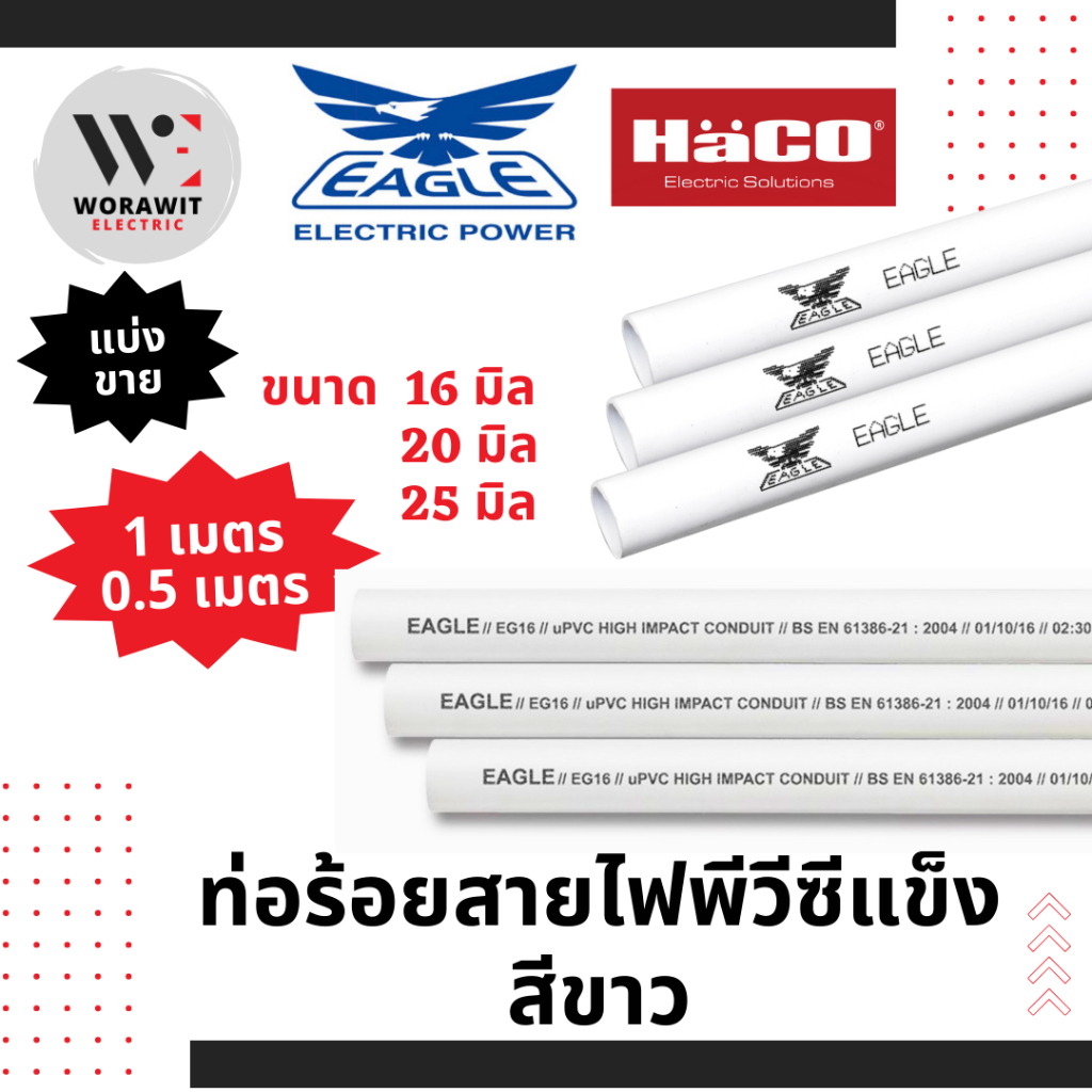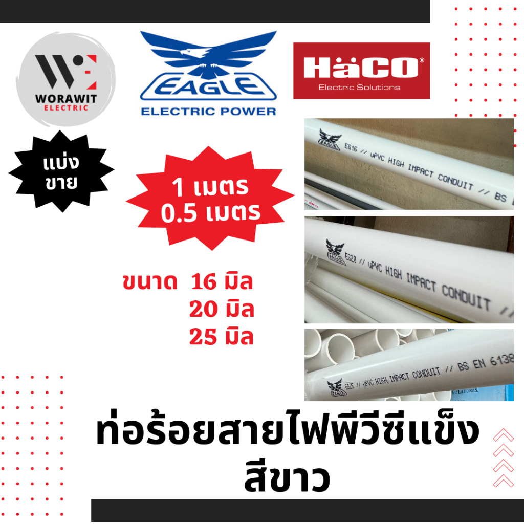 ท่อ ร้อยสายไฟ พีวีซีแข็ง สีขาว ขนาด 16 มิล, 20 มิล และ 25 มิล ความยาว 0.5 เมตร และ 1 เมตร