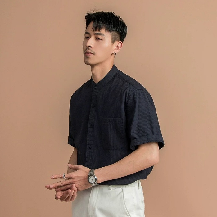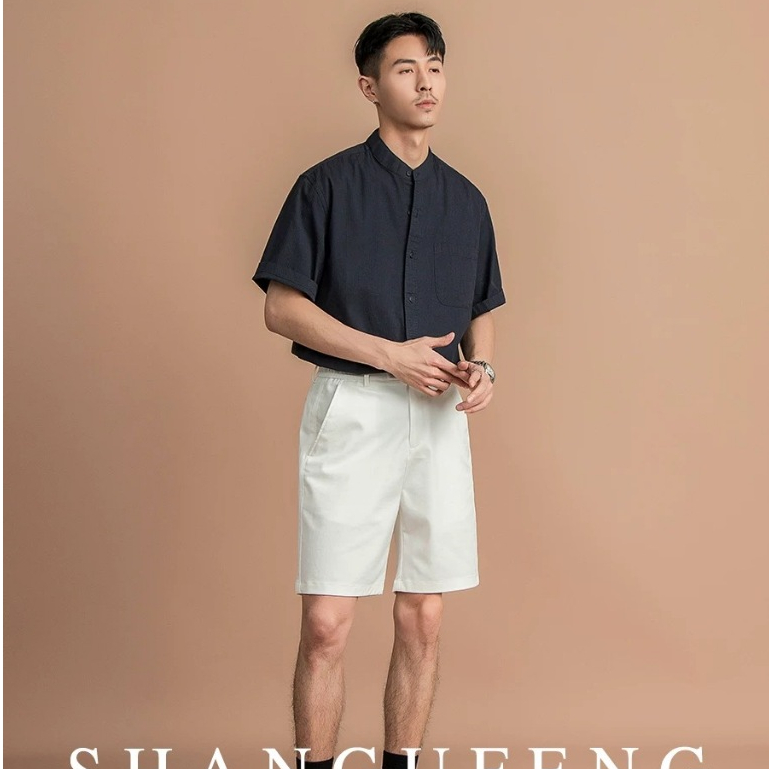 เสื้อเชิ้ตเอร์เชนชิผู้ชาย สไตล์หรูหรา เนื้อผ้าเรียบ สวมได้ทั้งทำงานและพักผ่อน