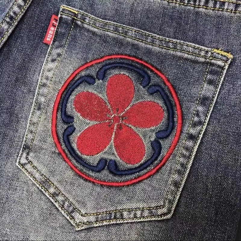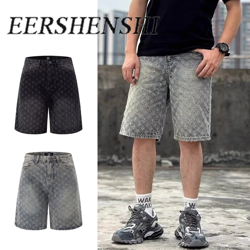 Eershenshi Denim Shorts กางเกงขาสั้นลําลองทรงตรงปักลายเข้ากันทั้งหมด