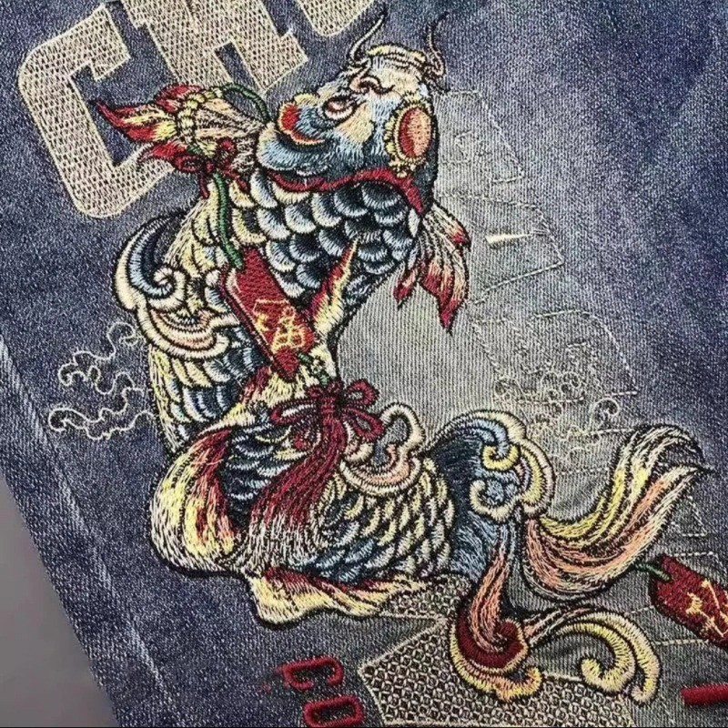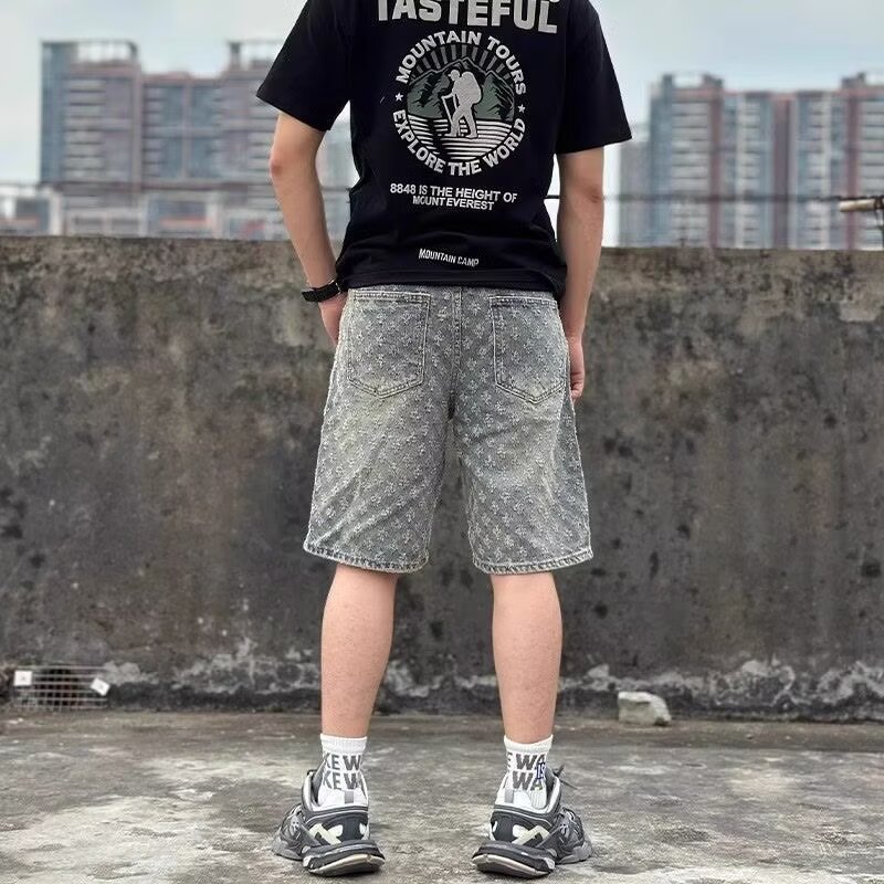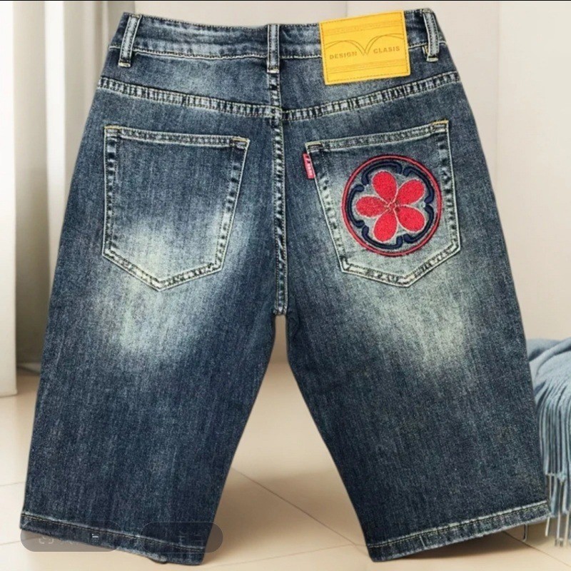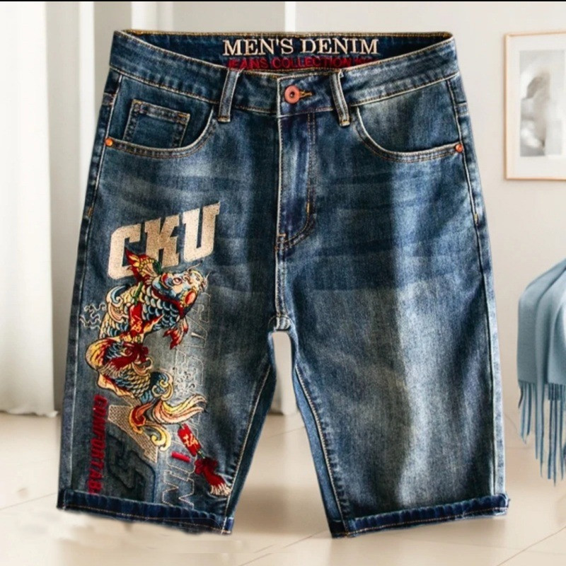 กางเกงยีนส์ขาสั้นผู้ชาย ลายปักปลาคาบาน่า ทันสมัย สวมใส่ง่ายในฤดูร้อน