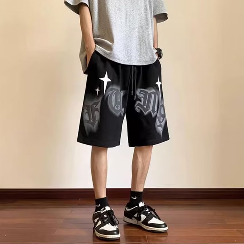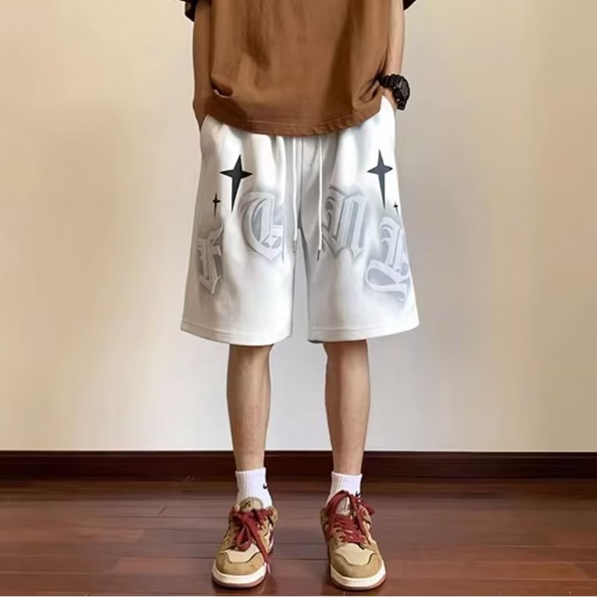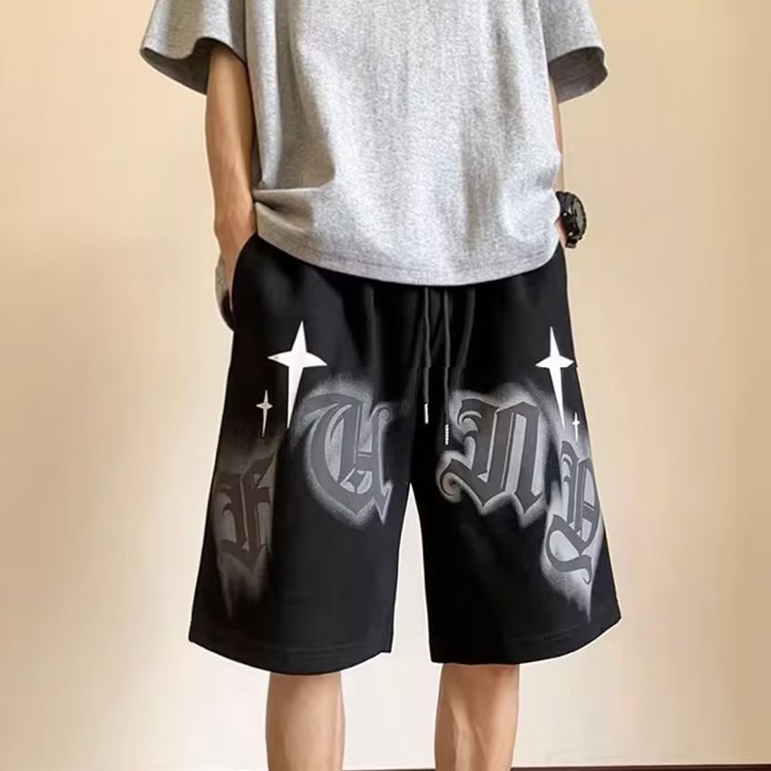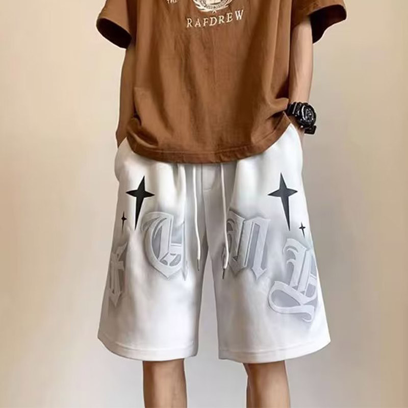 EERSHENSHI กางเกงขาสั้นอเมริกันผู้ชายแฟชั่นแบรนด์แฟชั่นส่วนบุคคลการพิมพ์กีฬาสันทนาการหลวมจัดส่งจากประเทศไทย