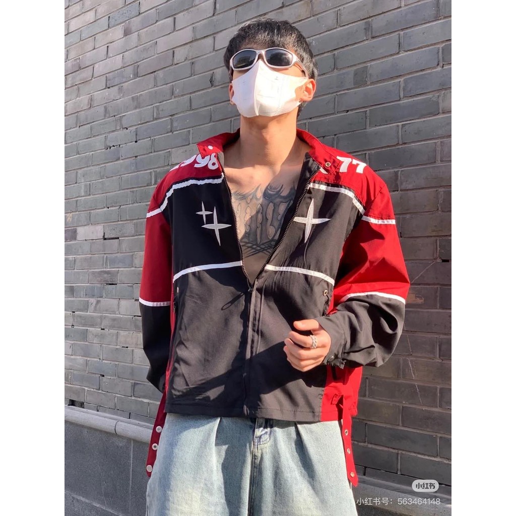 EERSHENSHI ชายเสื้อสีทึบเปลือกแจ็คเก็ตอเมริกัน สูง ถนน แฟชั่นแบรนด์หลวมกลางแจ้ง