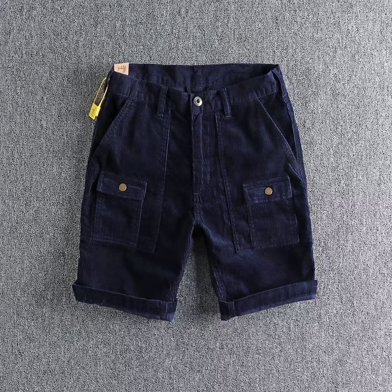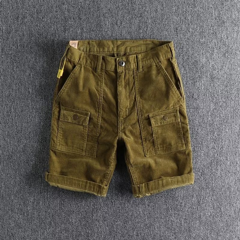 EERSHENSHIE กางเกงขาสั้นคาร์โก้ผ้าลูกฟูกลําลองผู้ชายฤดูร้อนหลวม Fit เทรนด์แฟชั่น