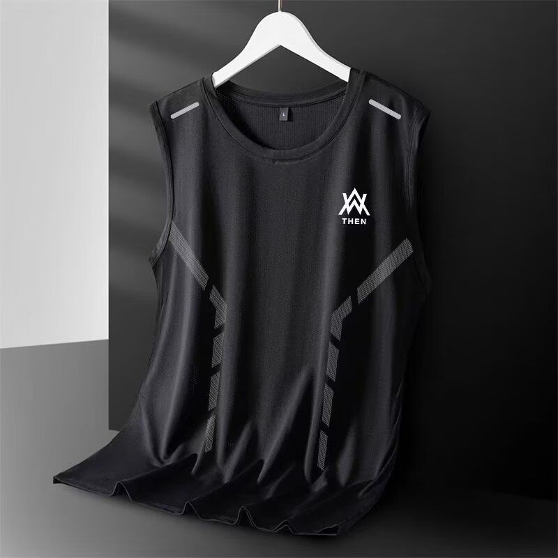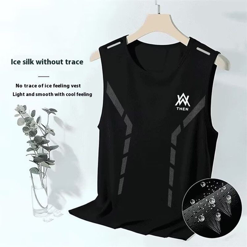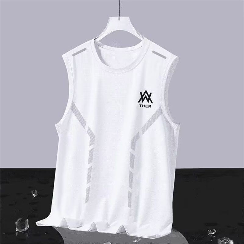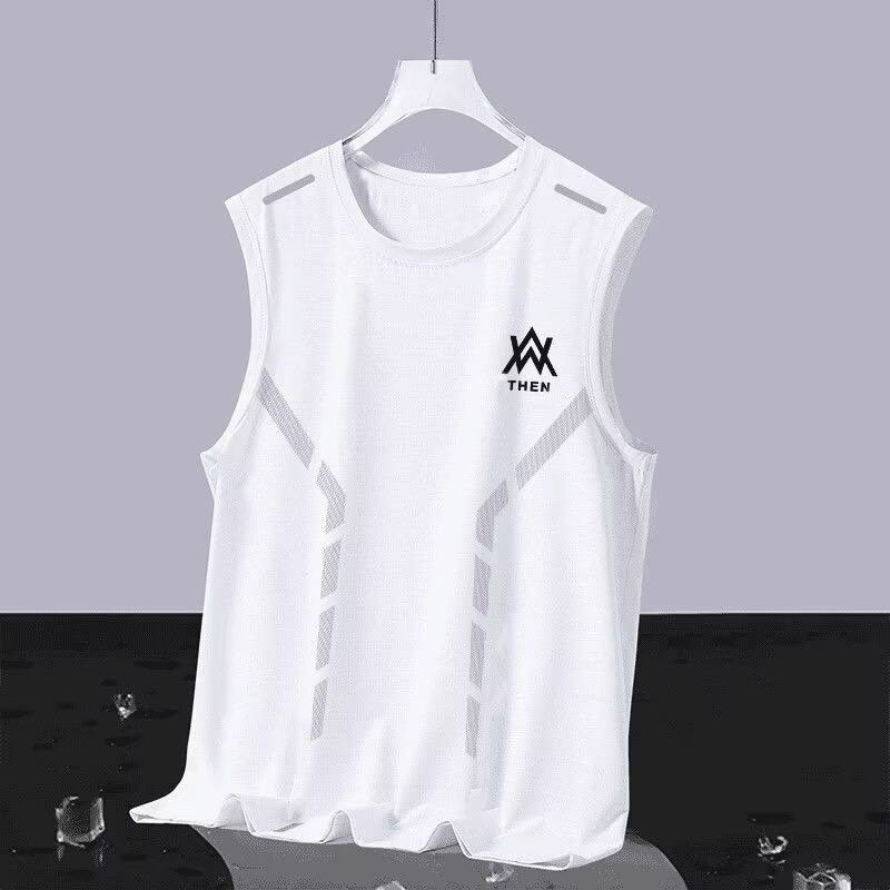EERSHENSHIE เสื้อกั๊กผ้าไหมน้ําแข็งผู้ชายฤดูร้อน Quick-Drying ตาข่ายเสื้อยืดแขนกุด plus ขนาดหลวมกีฬา