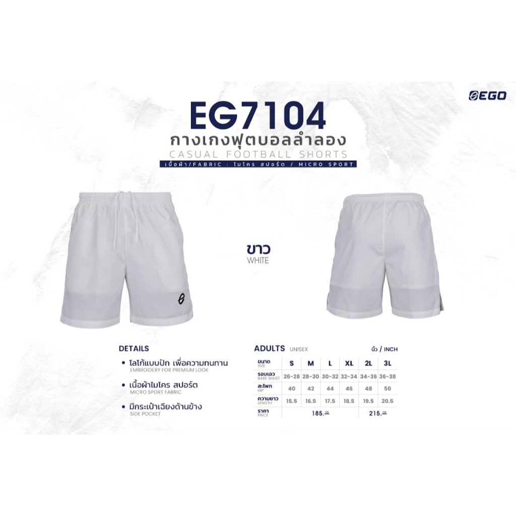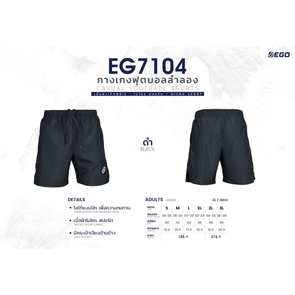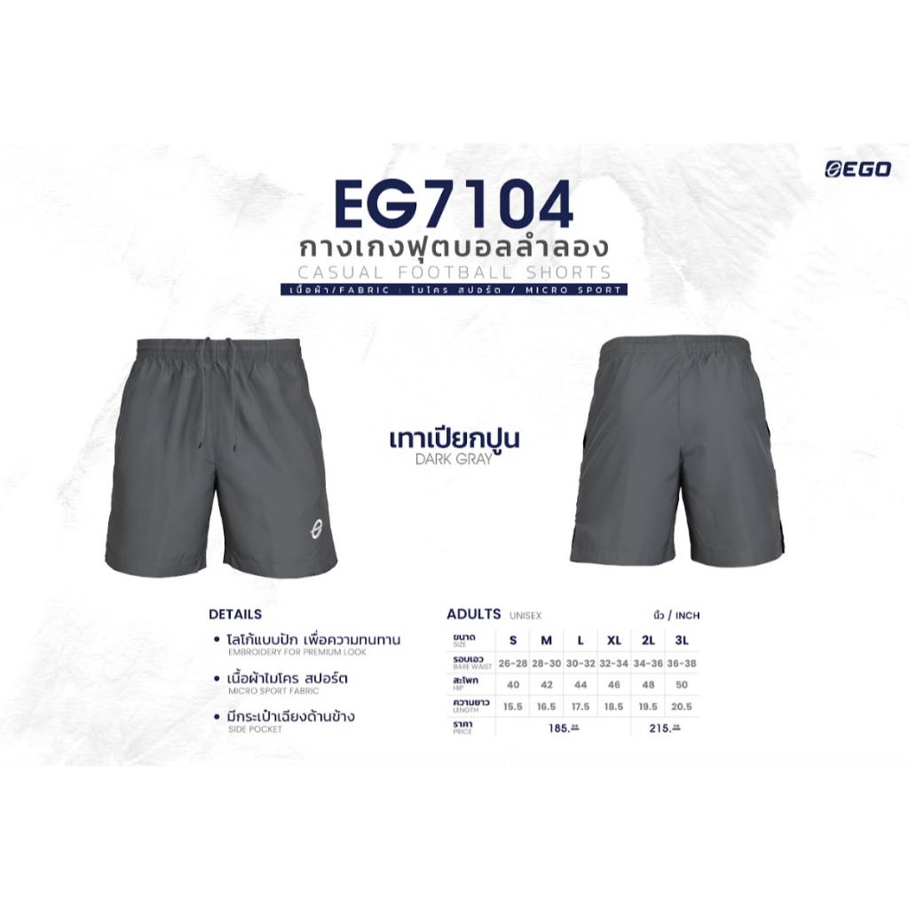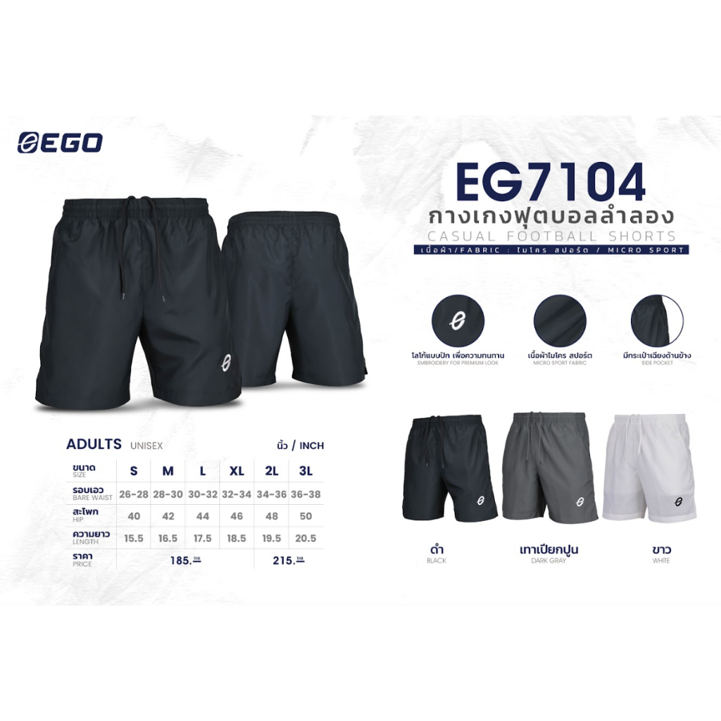 Ego Sport กางเกงฟุตบอลผ้าร่ม กางเกงฟุตบอลลำลอง มีกระเป๋า 3 in 1 ใส่เทียว ใส่ออกกำลังกาย ใส่นอน รุ่น EG 7104