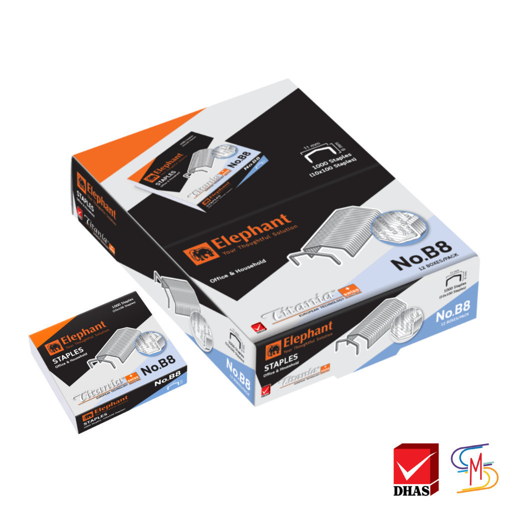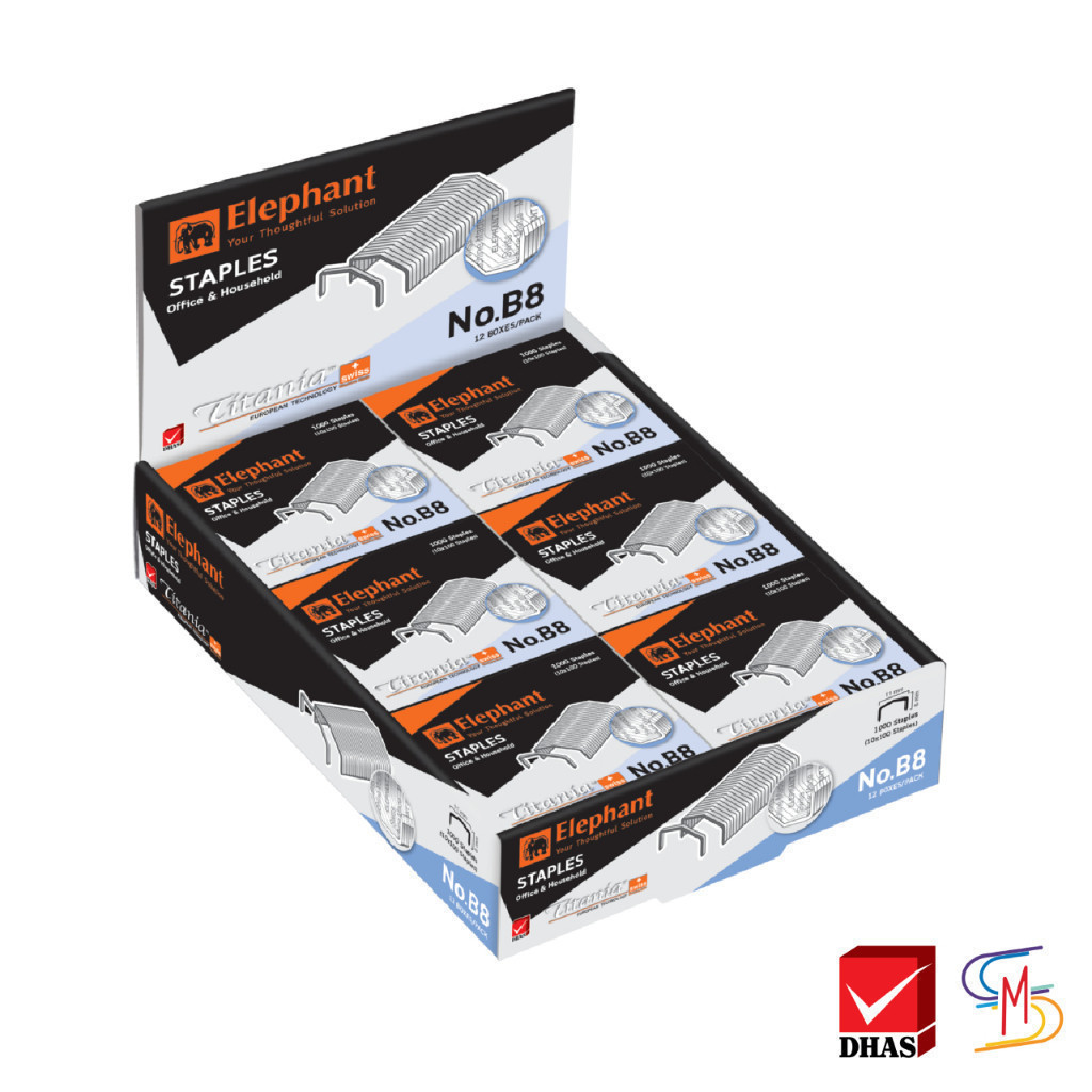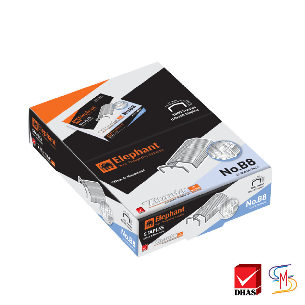 Elephant ตราช้าง ลวดเย็บกระดาษ ไททาเนีย No.B8 จำนวน 1 กล่อง