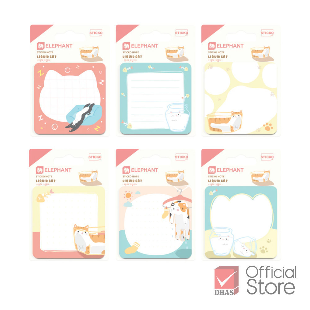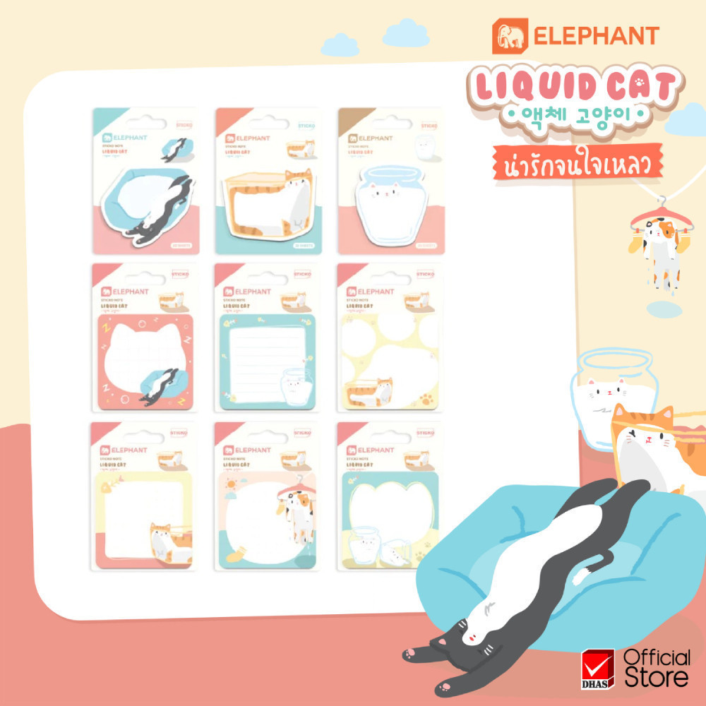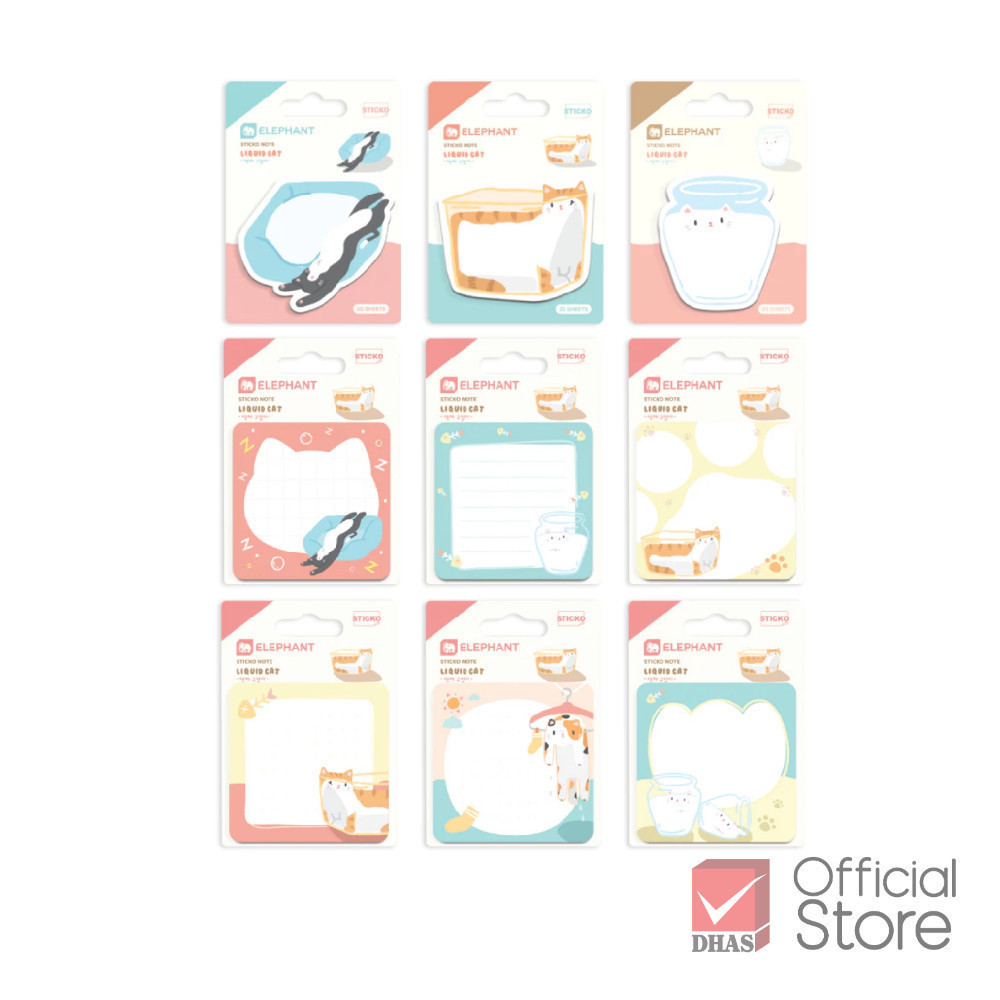Elephant กระดาษโน๊ต กระดาษโน้ตกาวในตัว ลิควิดแคท (คละลาย) จำนวน 20 แผ่น/แพ็ค