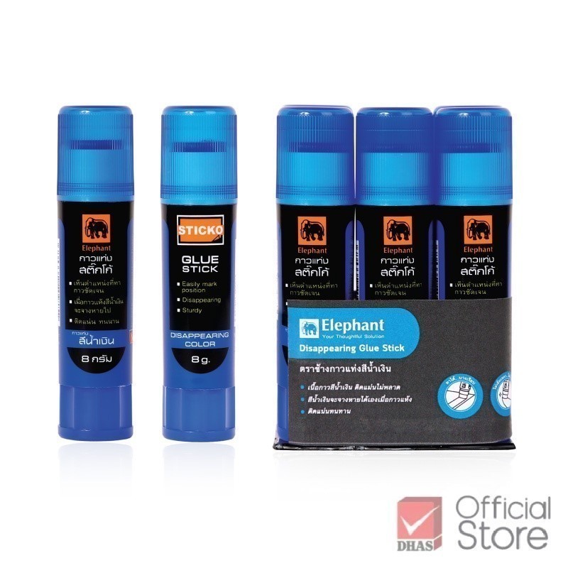 Elephant กาว กาวแท่ง Sticko สีน้ำเงิน ขนาด 8 กรัม จำนวน 1 แท่ง