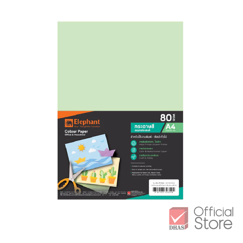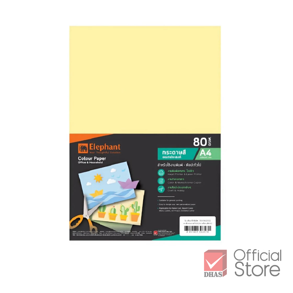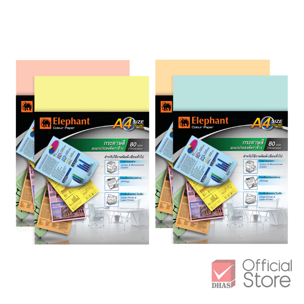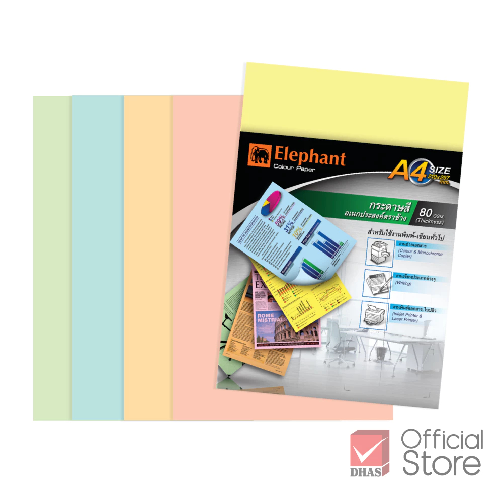 Elephant กระดาษ กระดาษสี กระดาษสีอเนกประสงค์ A4 80G จำนวน 100 แผ่น /แพ็ค