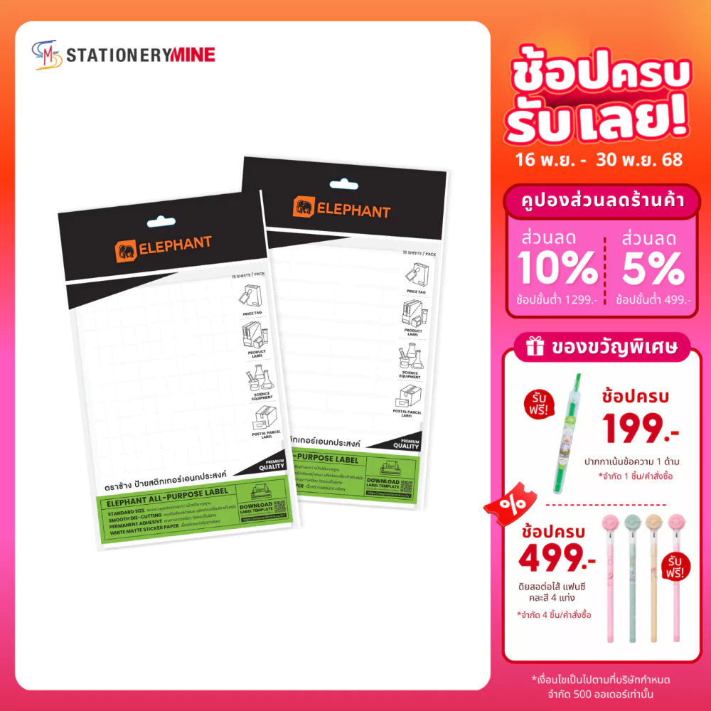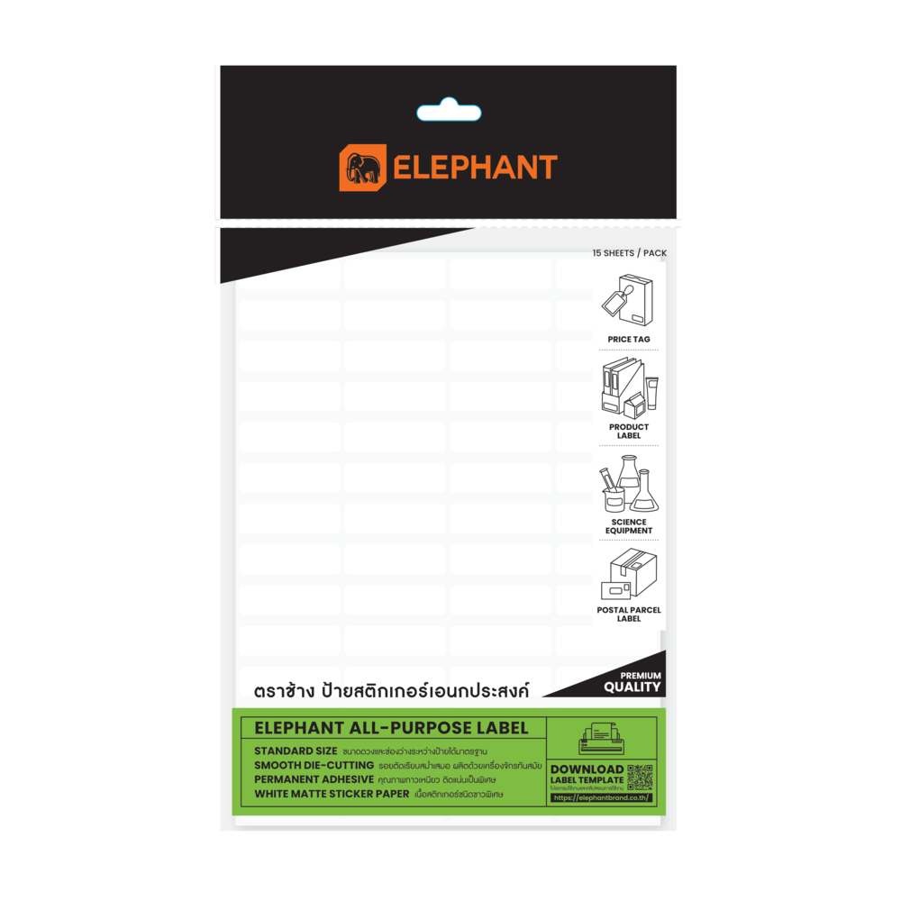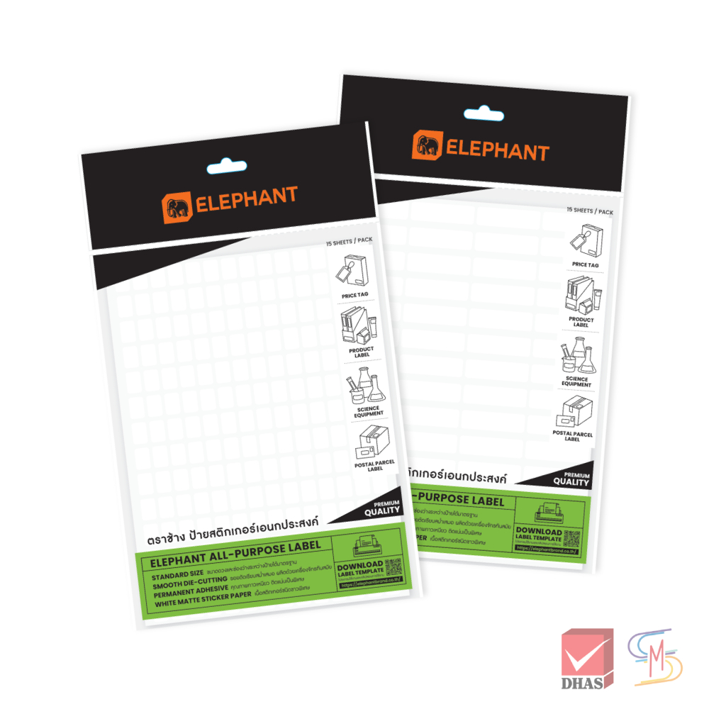 Elephant ตราช้าง กระดาษสติ๊กเกอร์ แล็บสติ๊กเกอร์ จำนวน 15 แผ่น/ถุง