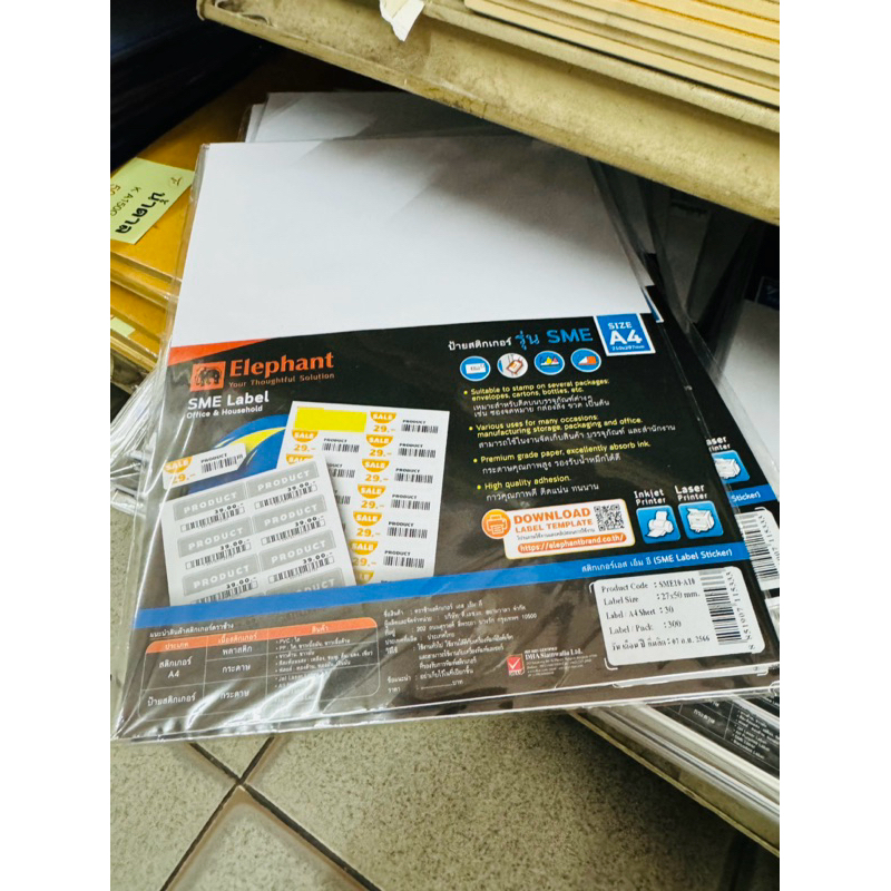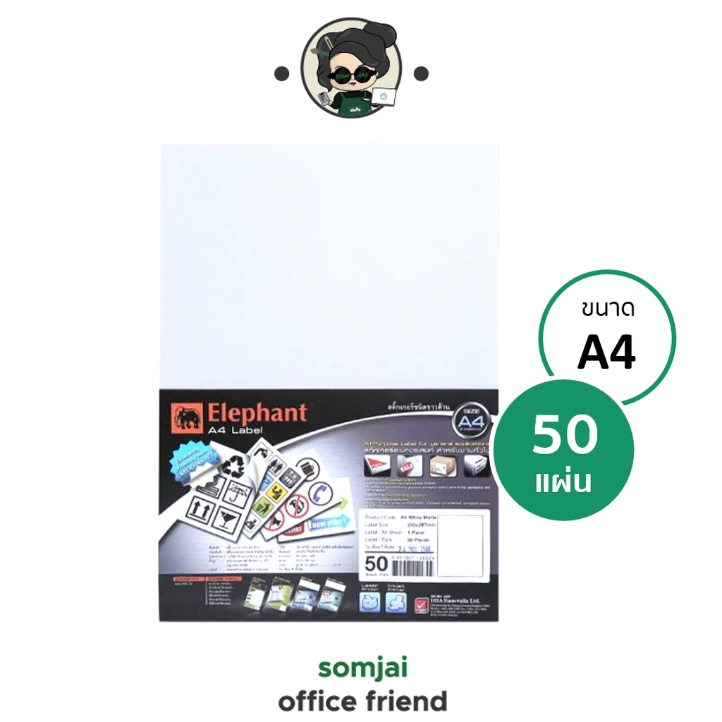 ตราช้าง แล็บสติ๊กเกอร์ label สีขาวด้าน ขนาดA4 สติ๊กเกอร์เนื้อกระดาษ (แพ็ค50)