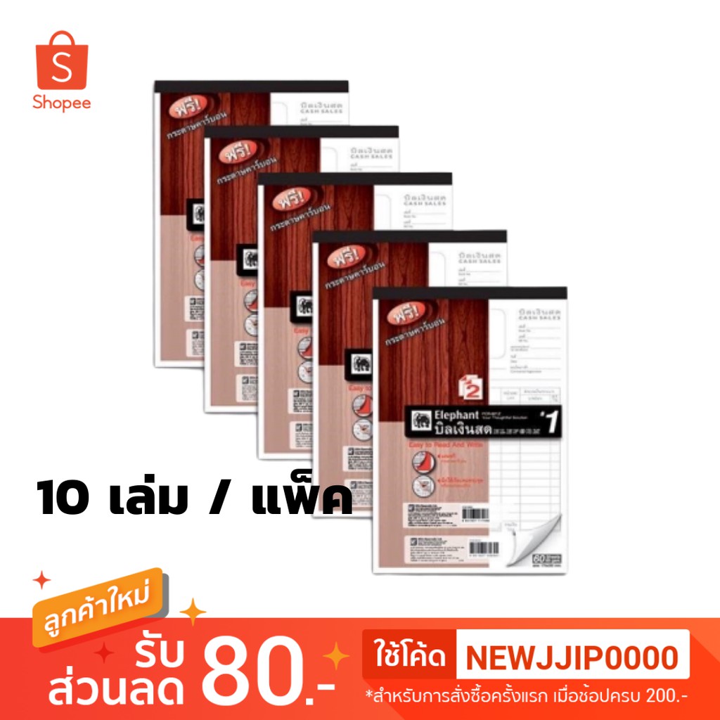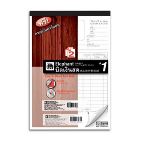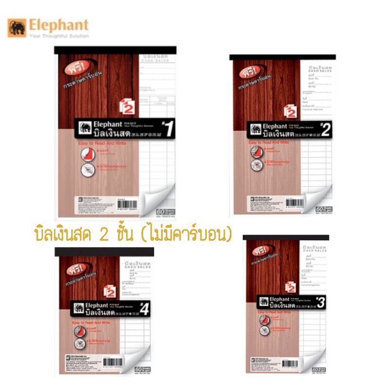 บิลเงินสด 2 ชั้น ตราช้าง No.0,1, 2, 3, 4 (ไม่มีคาร์บอนในตัว) ราคาต่อ 1 เล่ม