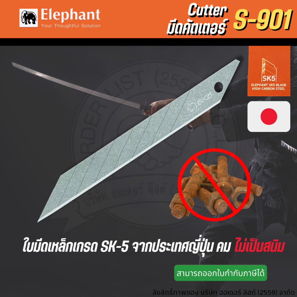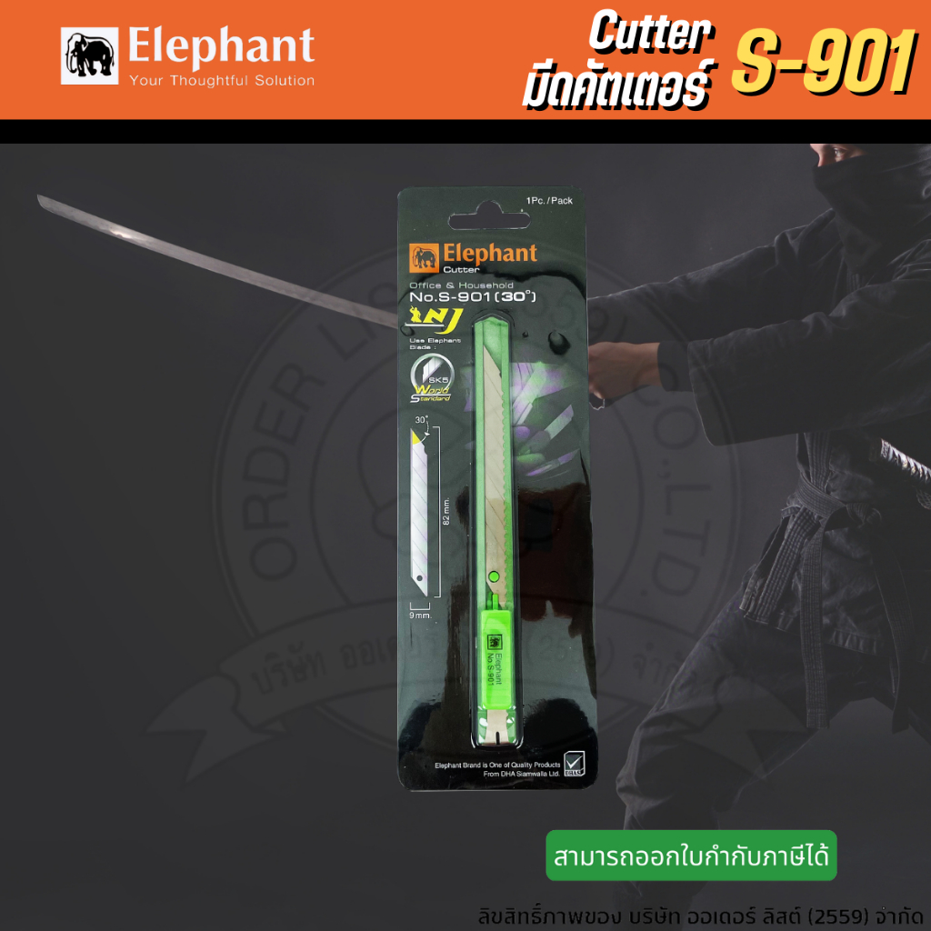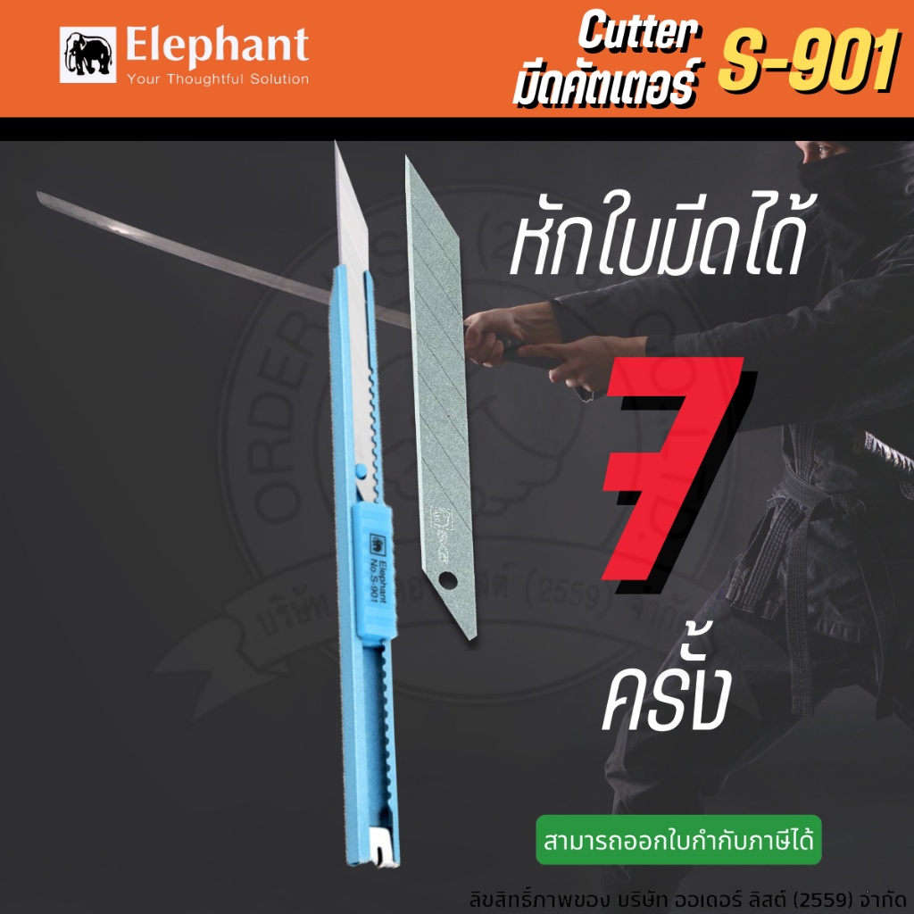 มีดคัตเตอร์เล็ก No.S-901 ใบคัทเตอร์มาตรฐาน 9 มม. ทำมุม 30 องศา (คละสี) ตราช้าง