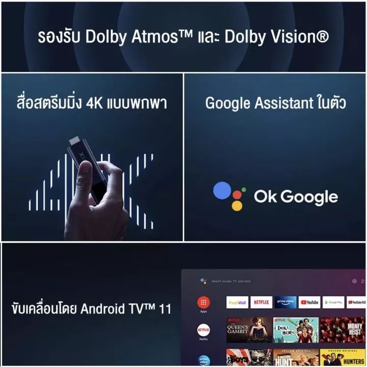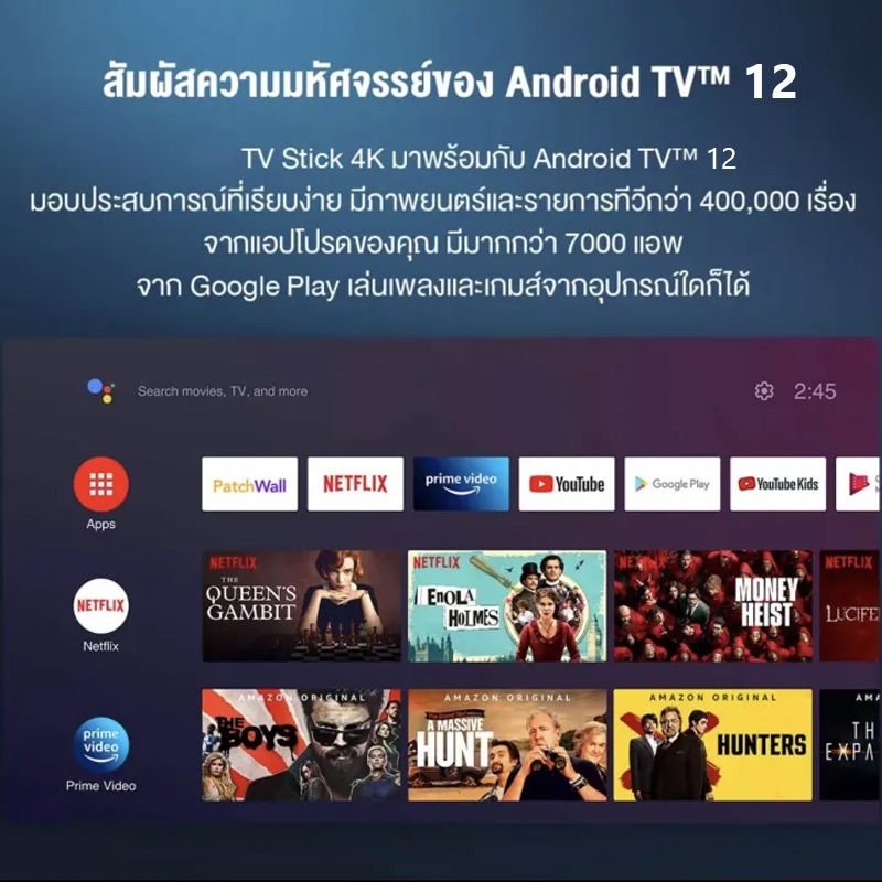 TV Stick 4K Android 12 4+64GB Quad-core กล่อง ดิจิตอล TV แอนดรอยด์ทีวีสติ๊ก Netflix/Youtube