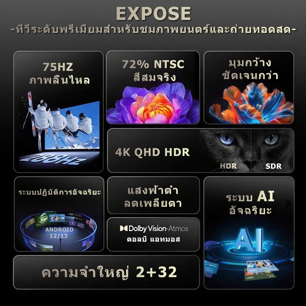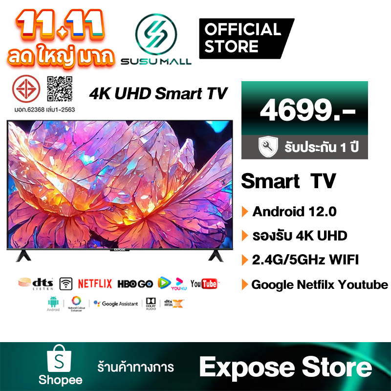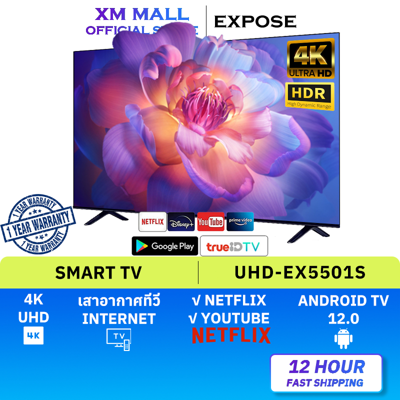 ทีวี 50 นิ้ว สมาร์ททีวี 55 นิ้ว ทีวี 32 นิ้ว Smart Tv โทรทัศน์ WiFi 4K Android 12.0 Youtube NETFLIX