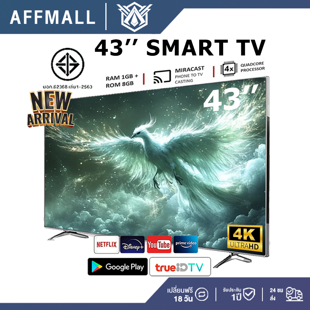 ทีวี 32 นิ้ว สมาร์ททีวี WIFI Smart TV 4K ทีวี 43 นิ้ว Android TV โทรทัศน์ แอนดรอยด์ทีวี Youtube Nexflix HDR TV 2k 1080p