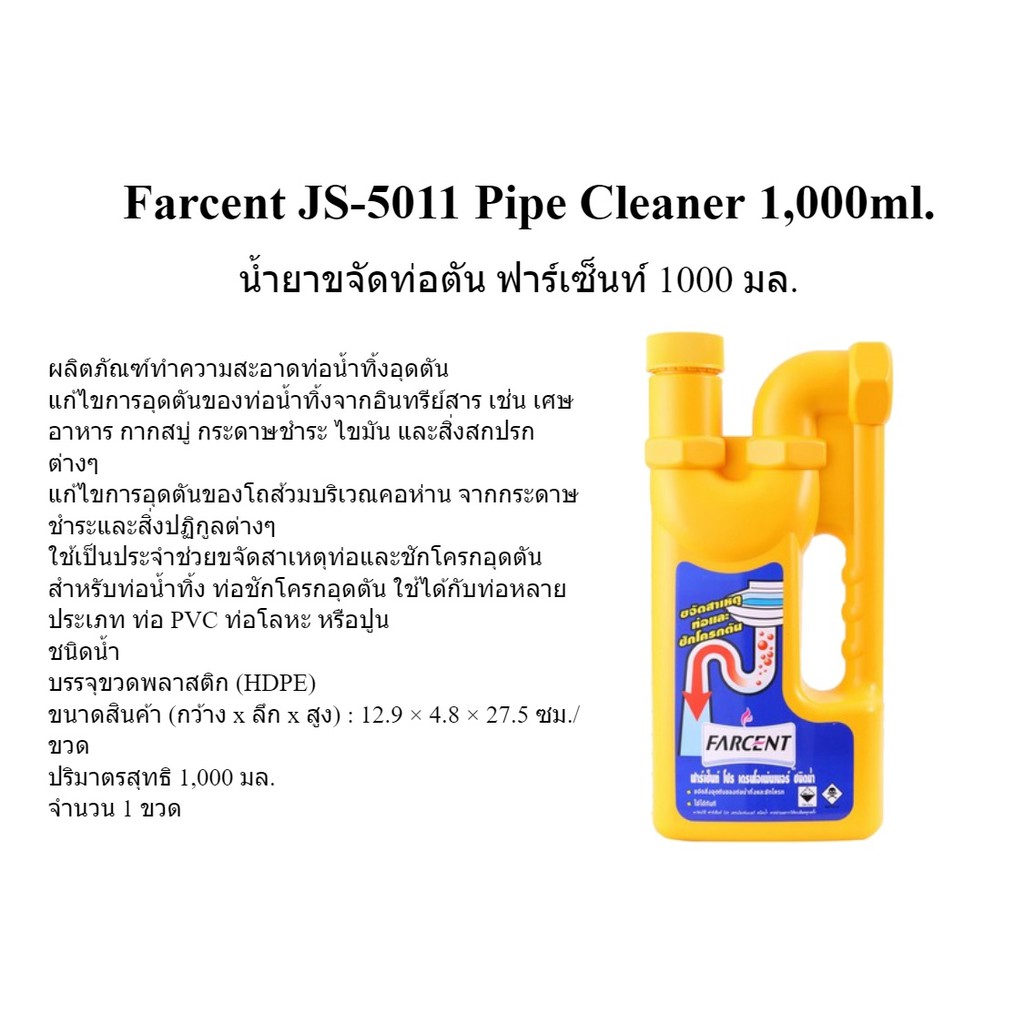 good.tools-FARCENT น้ำยาขจัดท่อน้ำตัน ขนาด 1000 มล. สีเหลือง ถูกจริงไม่จกตา