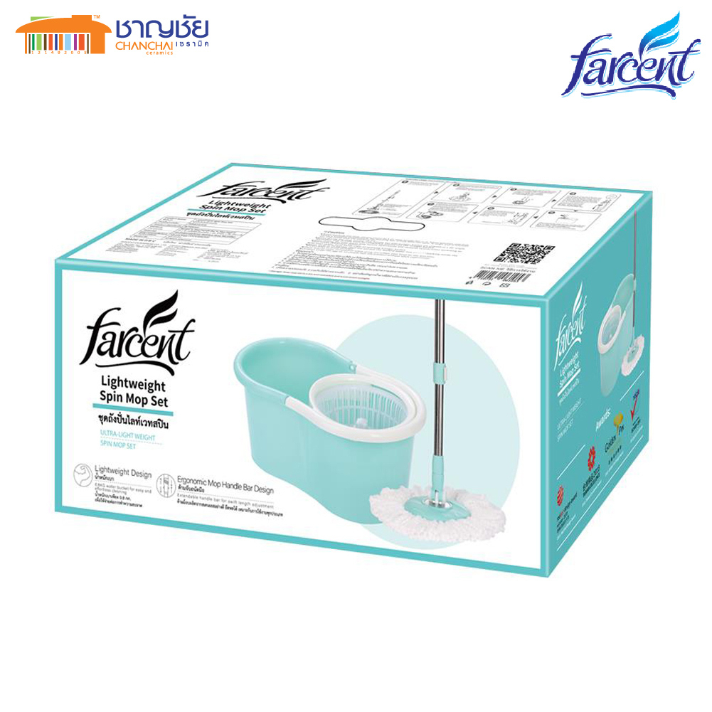 [พร้อมส่ง] FARCENT – WW6101 ชุดถังปั่นไลท์เวทสปิน ไม้ม็อบ ไม้ถูพื้น สีเขียวพาสเทล