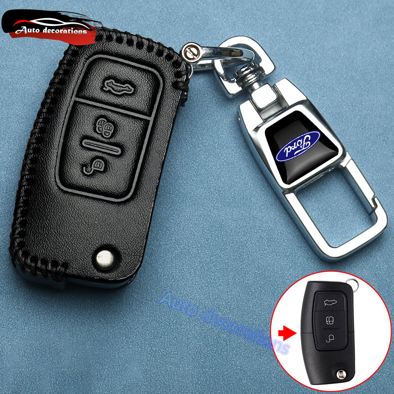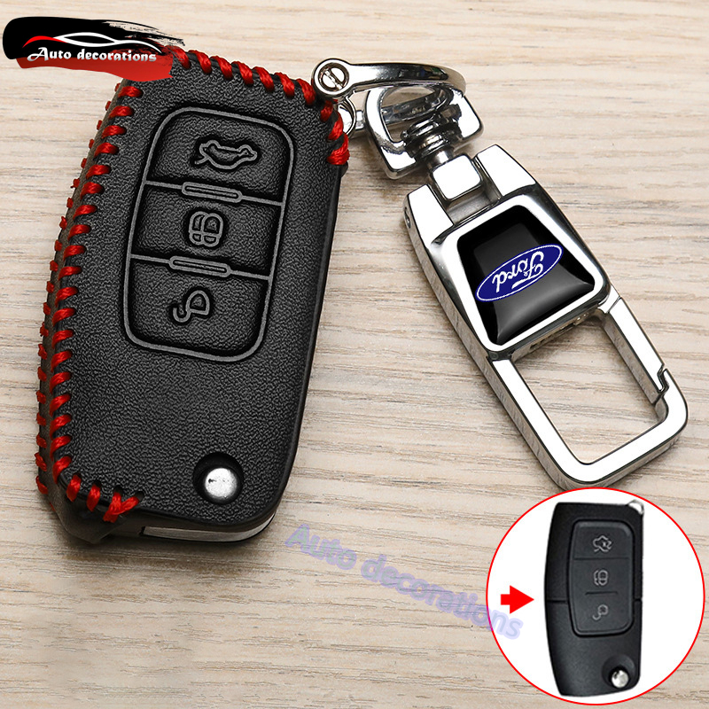 เคสกุญแจรถ ford สําหรับ ford fiesta focus ecosport ที่หุ้มกุญแจรถหนังวัว กระเป๋าใส่กุญแจ ford พวงกุญแจ